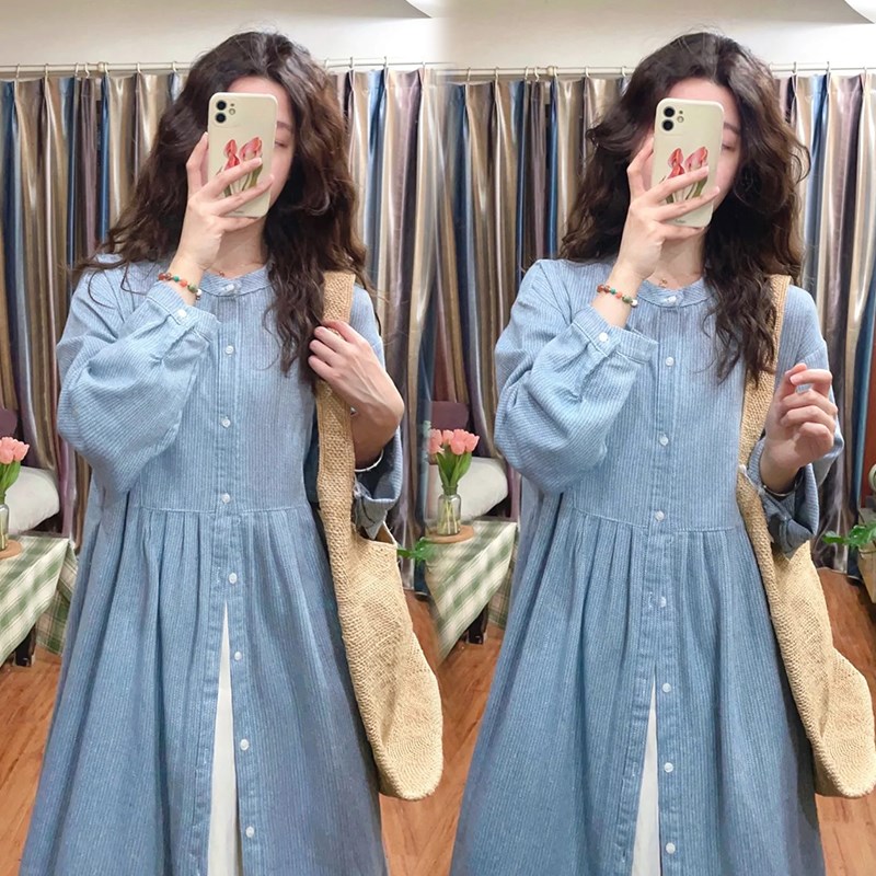孕妇装2025春装新款长袖衬衫裙中长款显瘦a字连衣裙+半身裙两件套