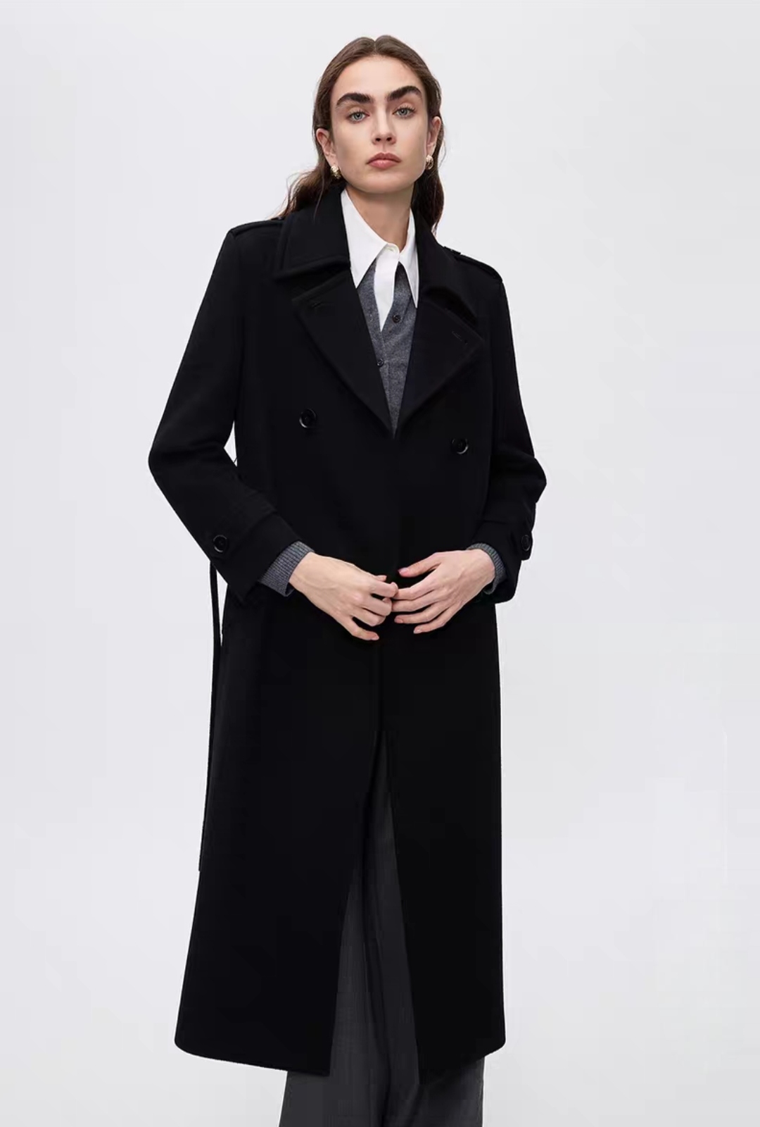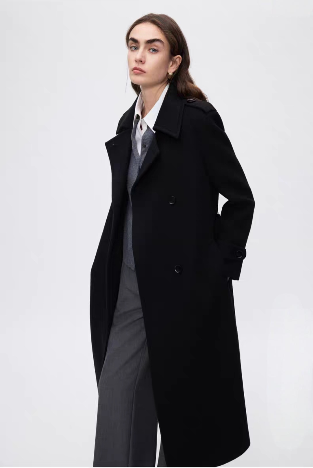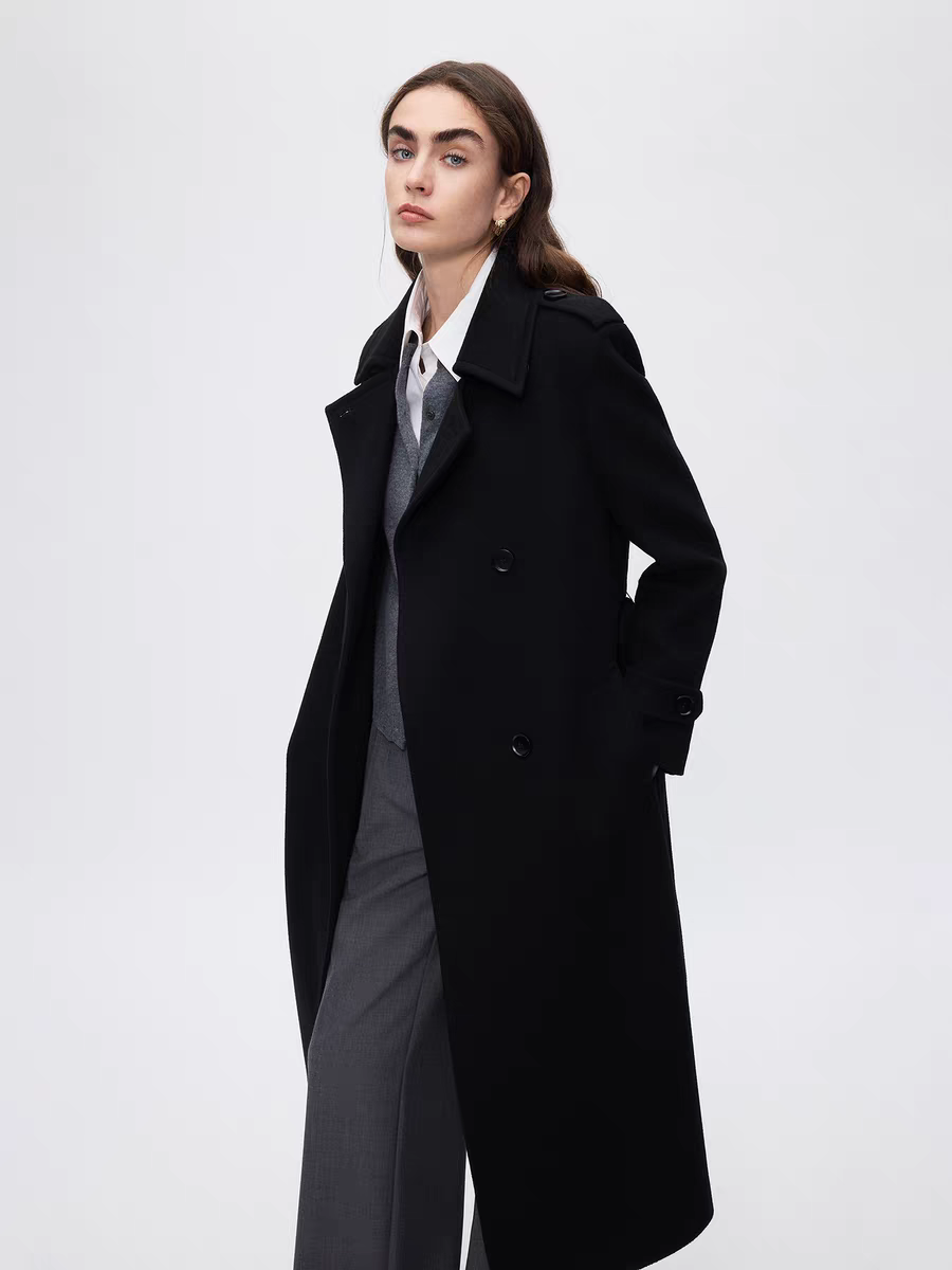 2025冬季新款羊毛气质高级感西装领正肩中长款显瘦毛呢外套女大衣