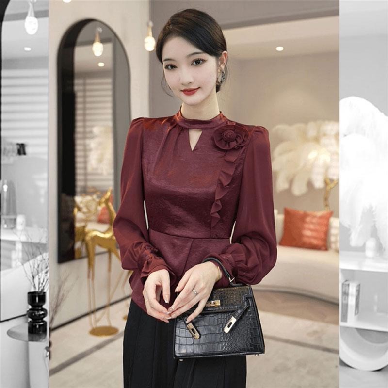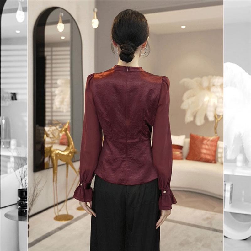 2024早秋季新款衬衫轻奢高级感穿搭时尚酒红色长袖衬衫上衣女