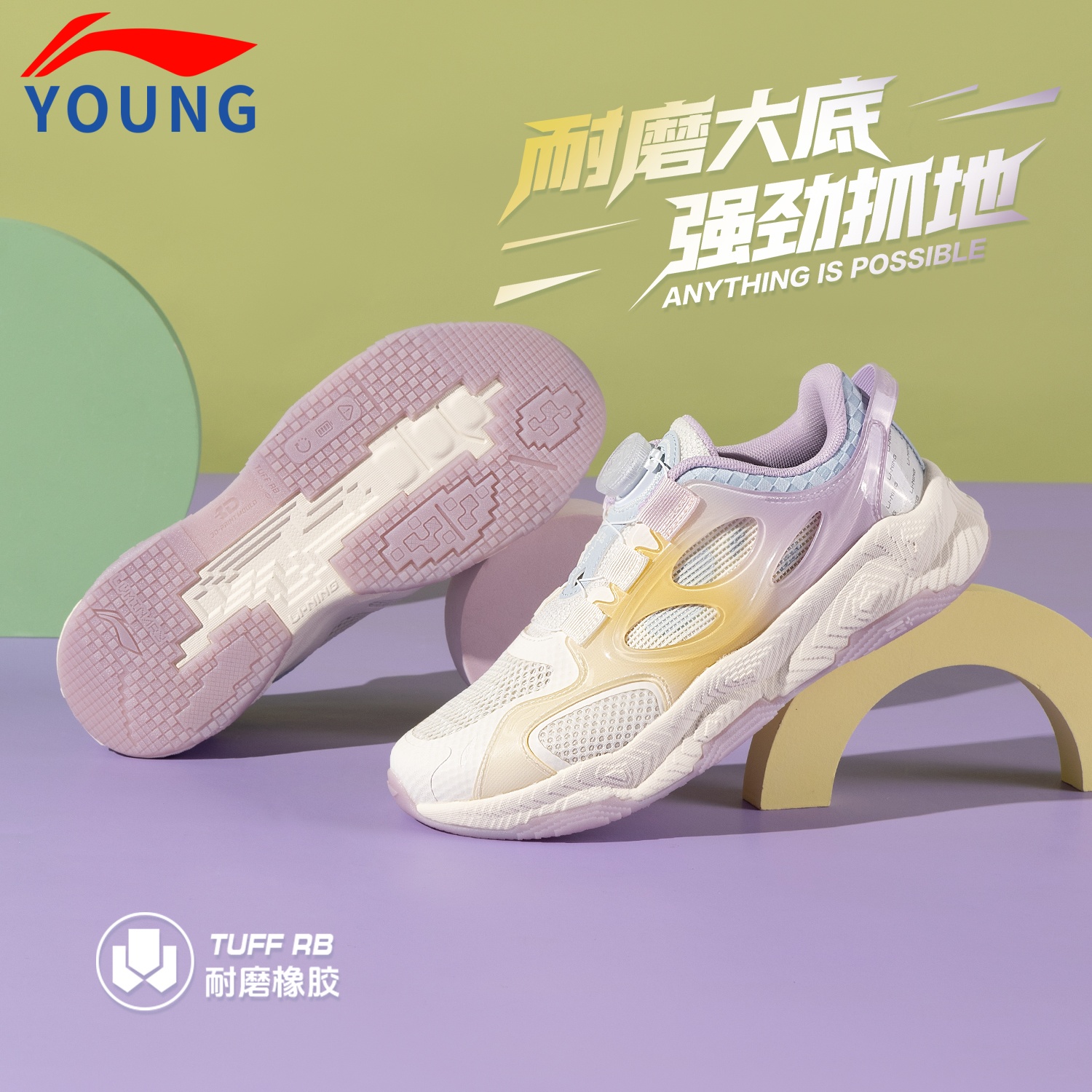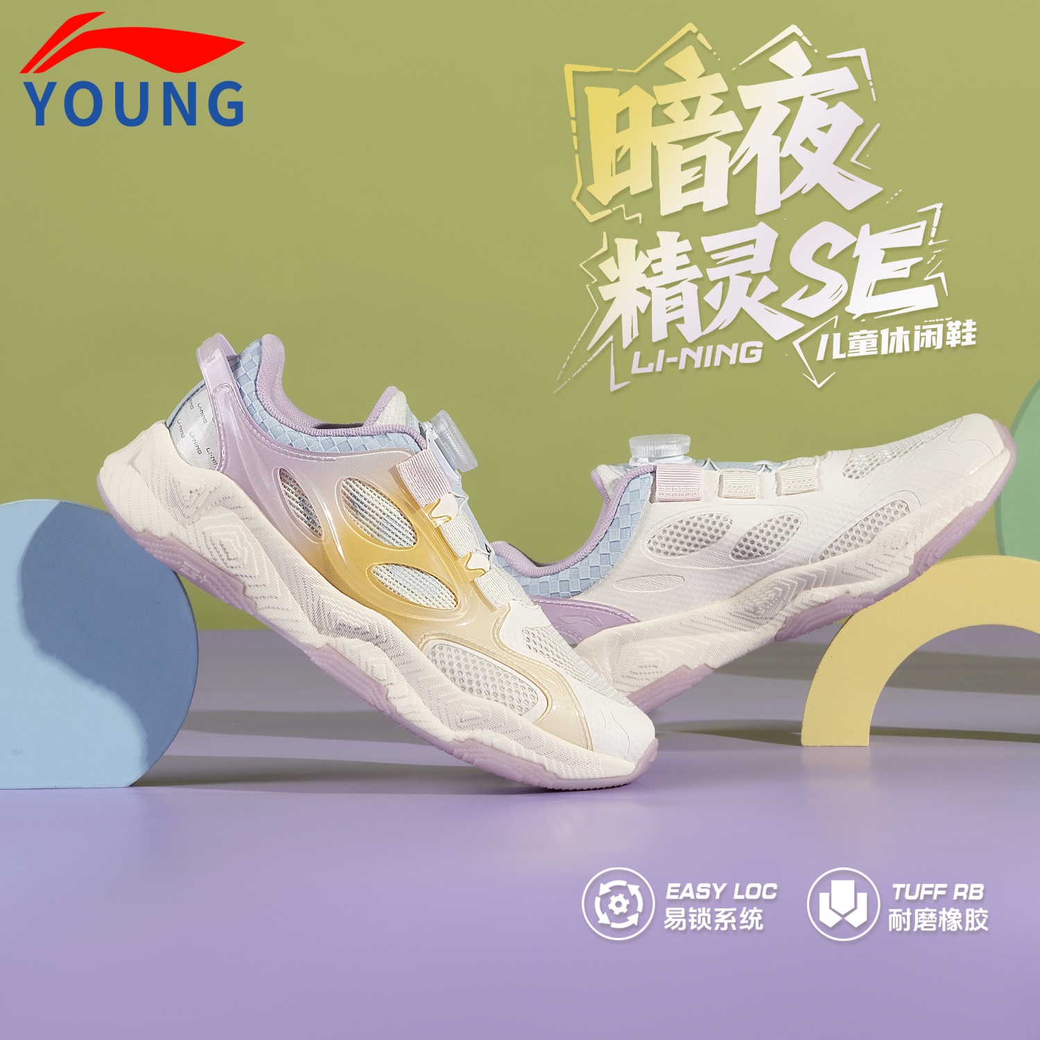 李宁暗夜精灵SE儿童休闲鞋男女童2025年新款旋转扣透气夜光运动鞋