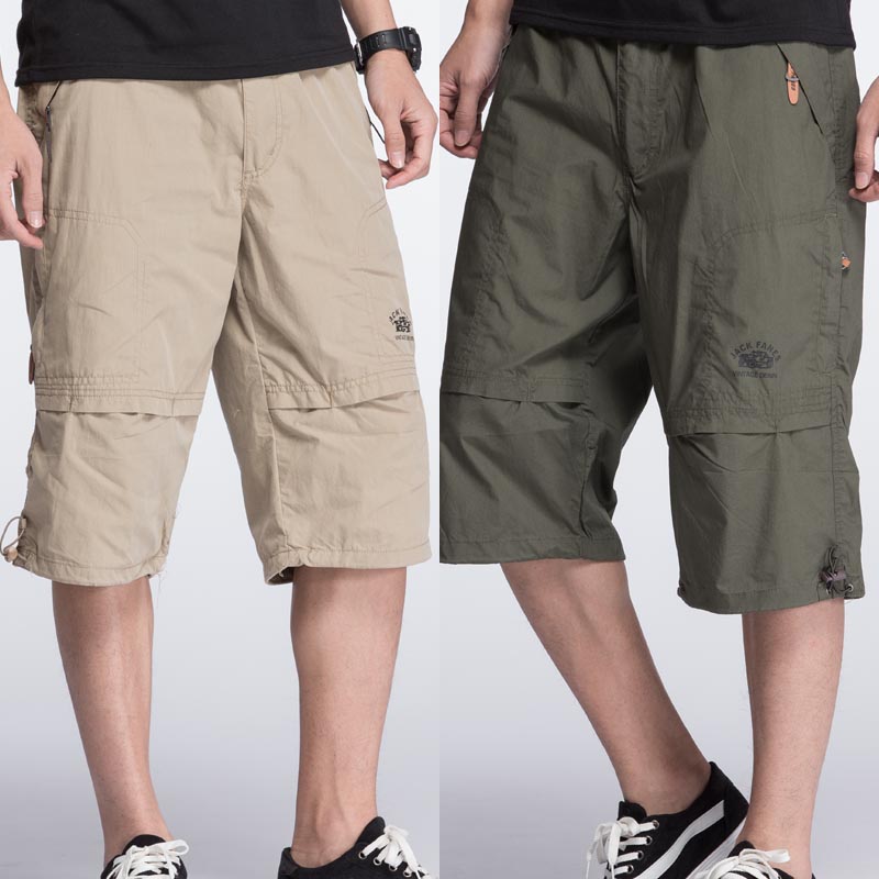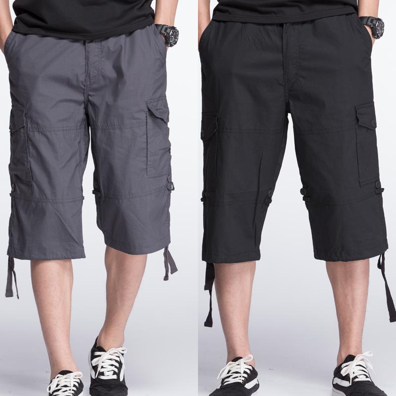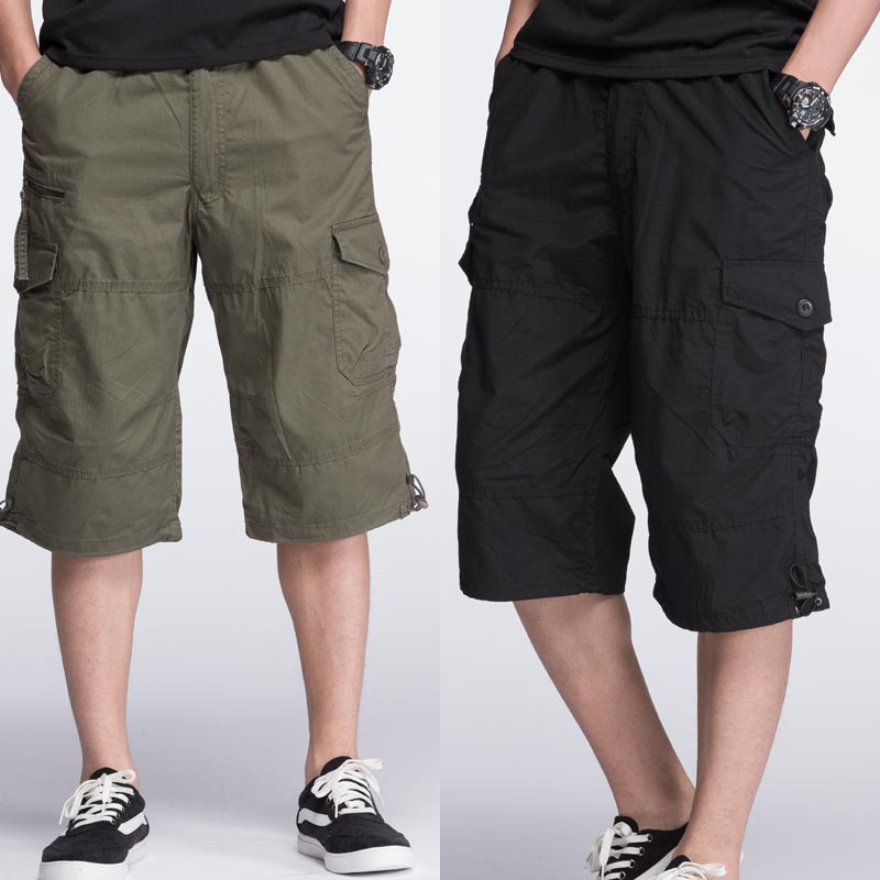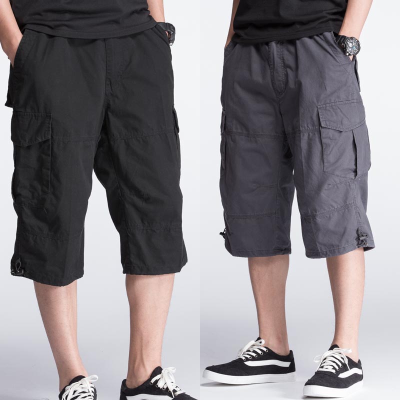 夏天男士七分裤男士宽松7分工装中裤加大码口袋肥佬中裤休闲薄款