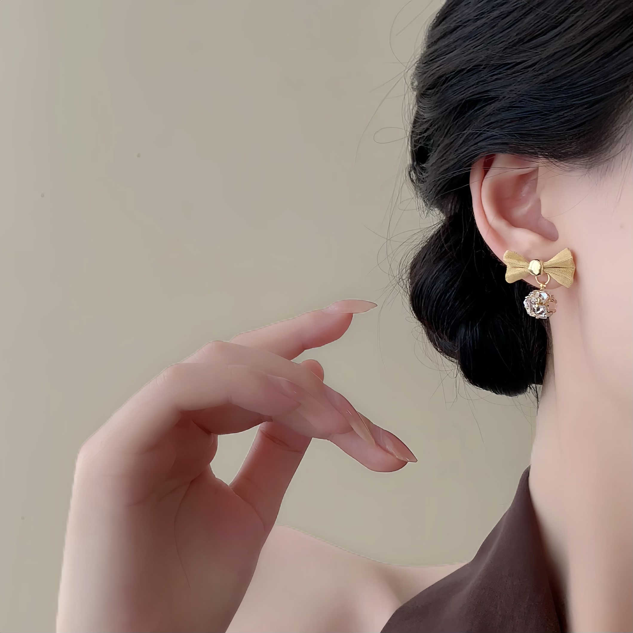 「心之守护」金色蝴蝶结精致耳饰蚊香盘耳夹女无耳洞甜美耳钉耳环