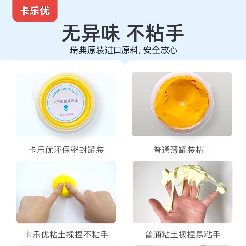 卡乐优超轻粘土儿童无毒环保彩泥宝宝白色手工diy黏土24色橡皮泥