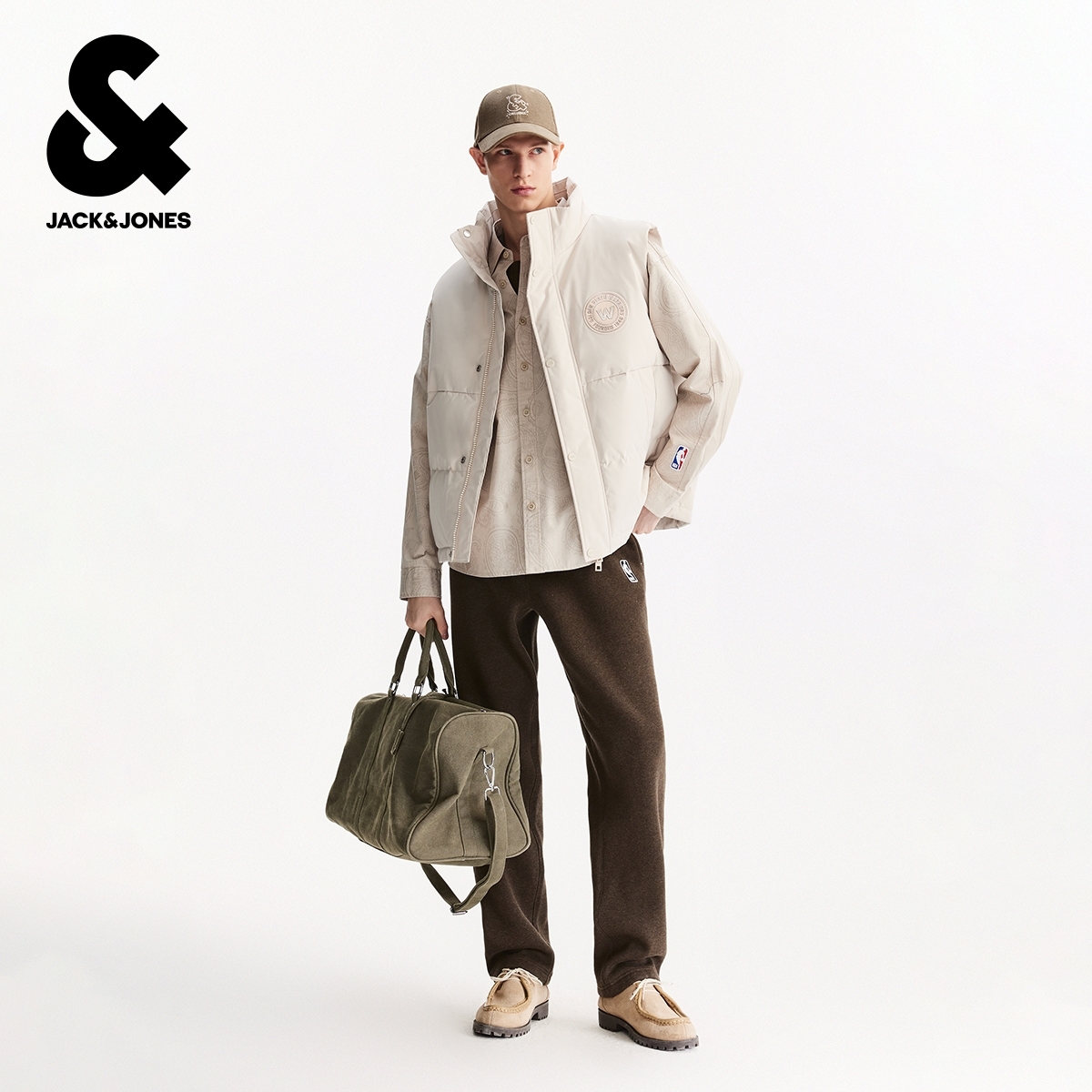 绫致杰克琼斯男装NBA金州勇士队联名秋冬羽绒马甲刺绣保暖外套