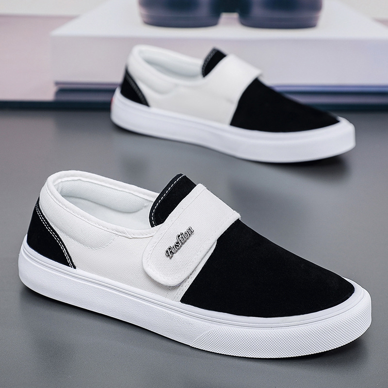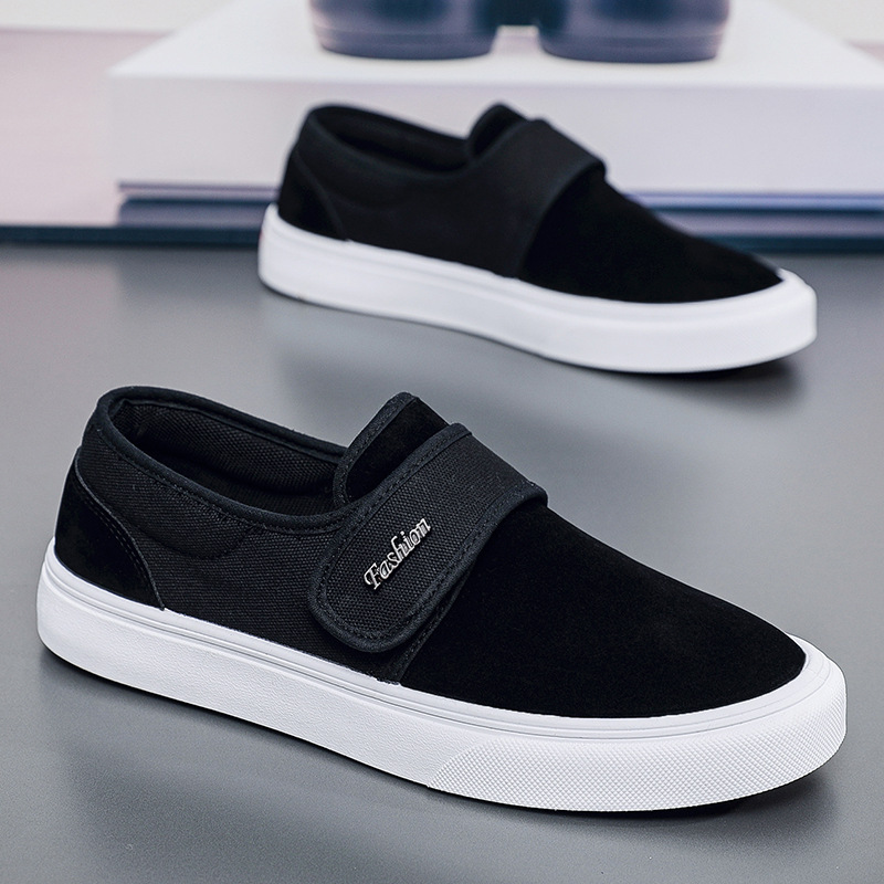 一脚蹬男鞋魔术贴帆布鞋男韩版潮流百搭情侣套脚懒人休闲板鞋男女