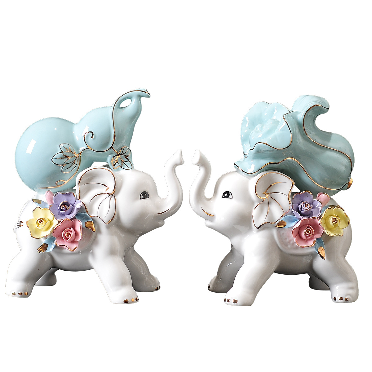 厂价陶瓷大象摆件一对葫芦白菜家居办公桌面创意白色工艺品礼