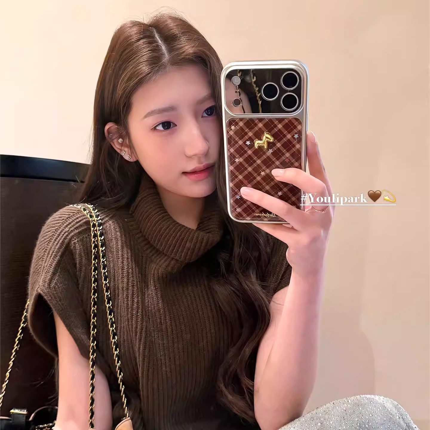 由里公园ins秋冬可可棕格纹星星小金马17适用17pro苹果17ProMax手机壳iPhone16全包14新款16Promax保护套13女