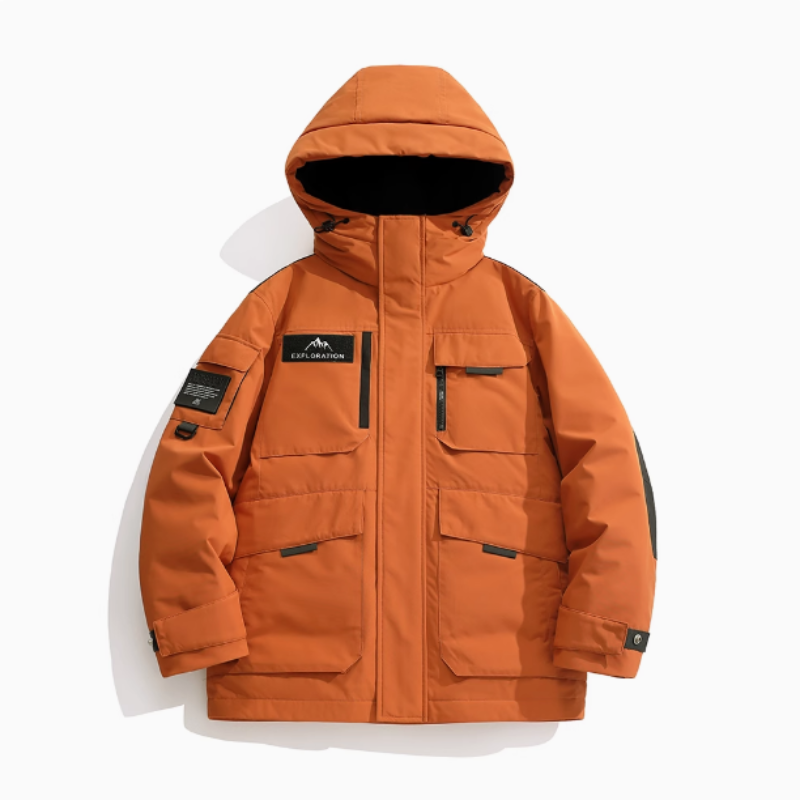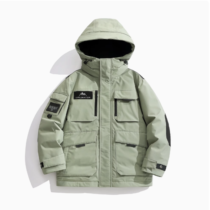 户外工装风羽绒服男冬季2024新款连帽防寒加厚保暖三防冲锋衣外套