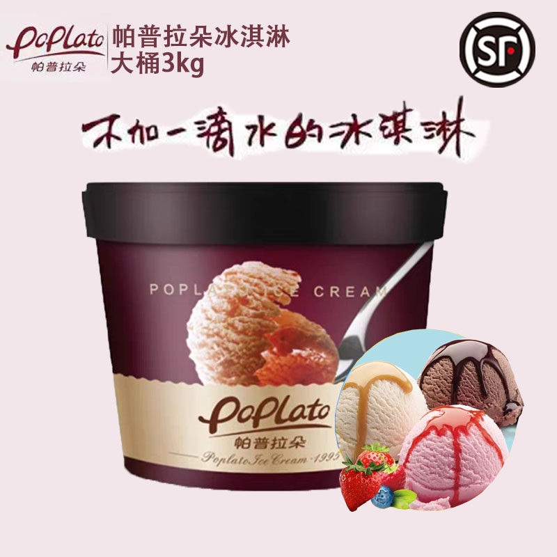 大桶抹茶冰淇淋poplato帕普拉朵草莓曲奇榴莲香草3kg商用桶装雪糕