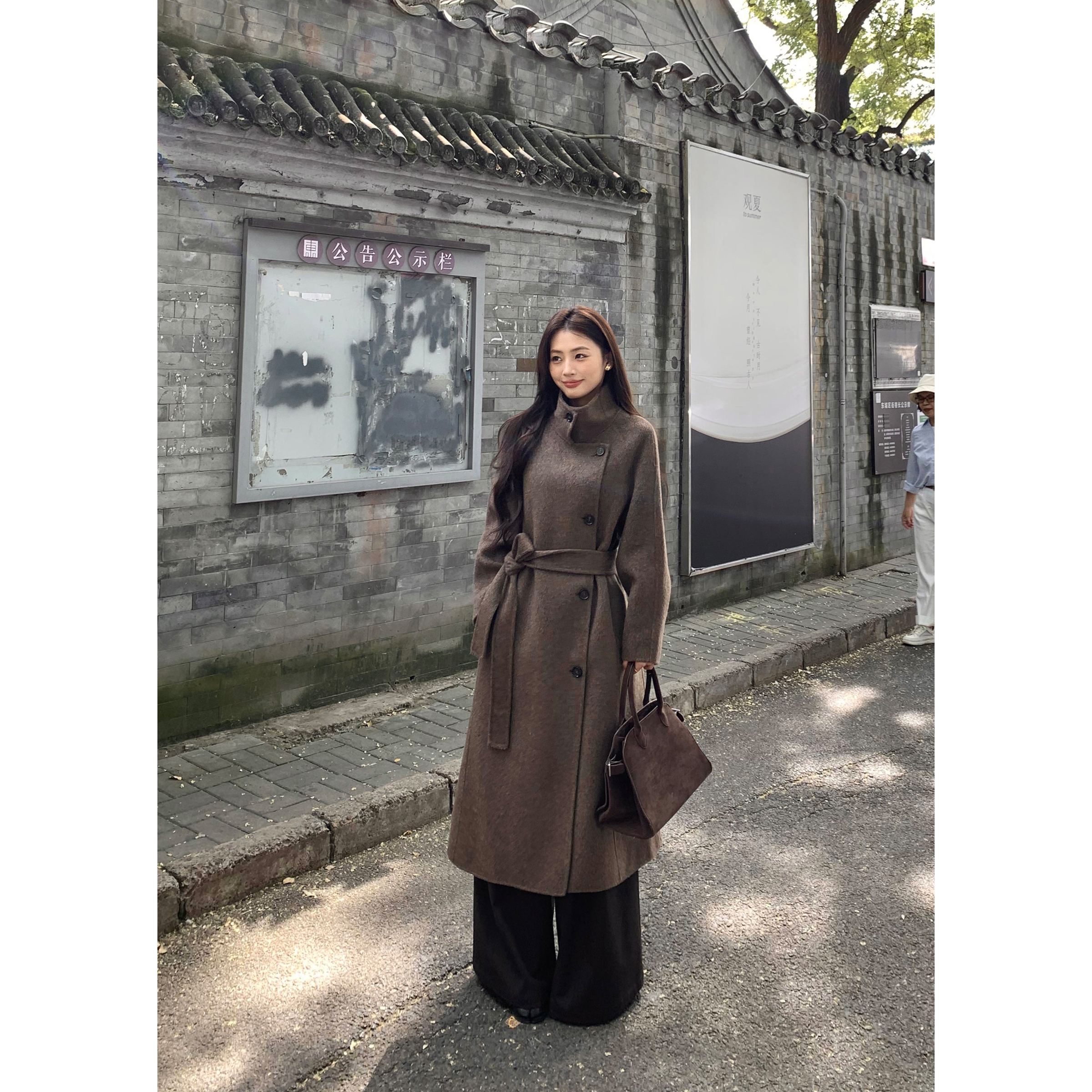 pusumede曼城之都 全羊毛双面呢大衣女高级感中长款收腰毛呢外套