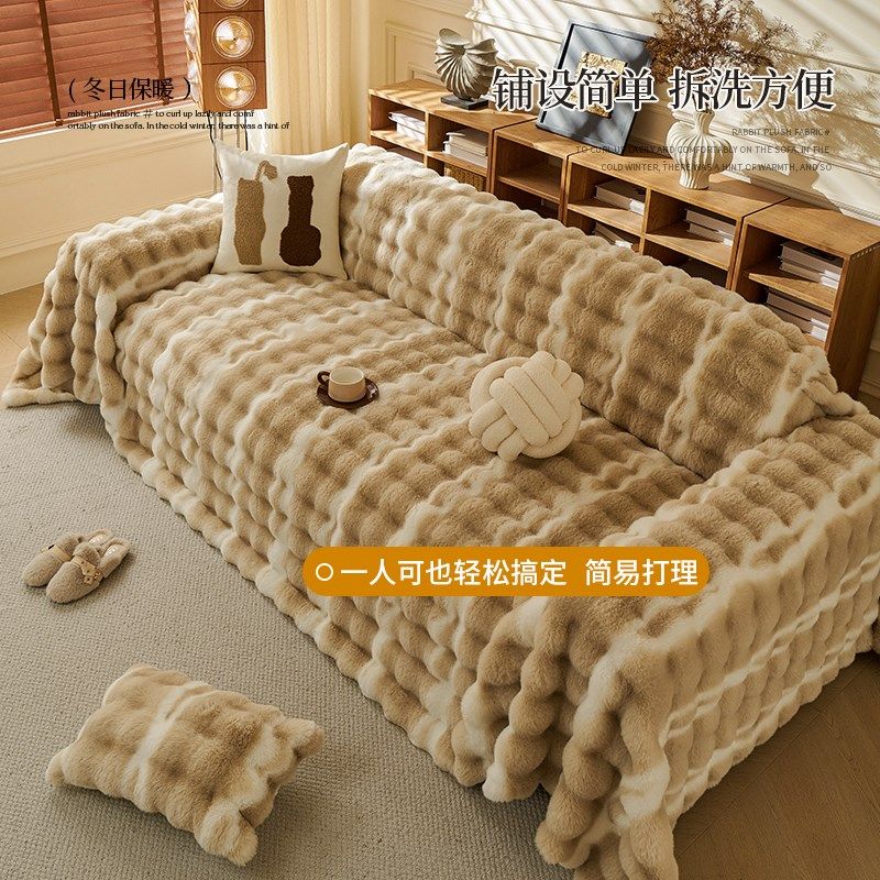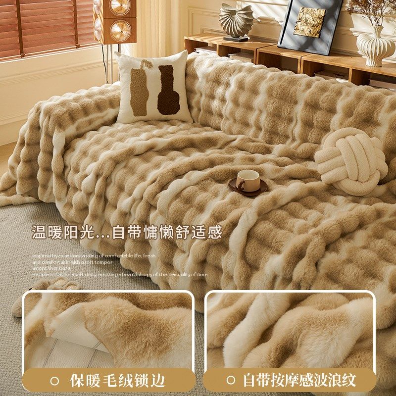 兔毛绒沙发盖布巾冬季年流行新款加厚防滑皮沙发垫子罩