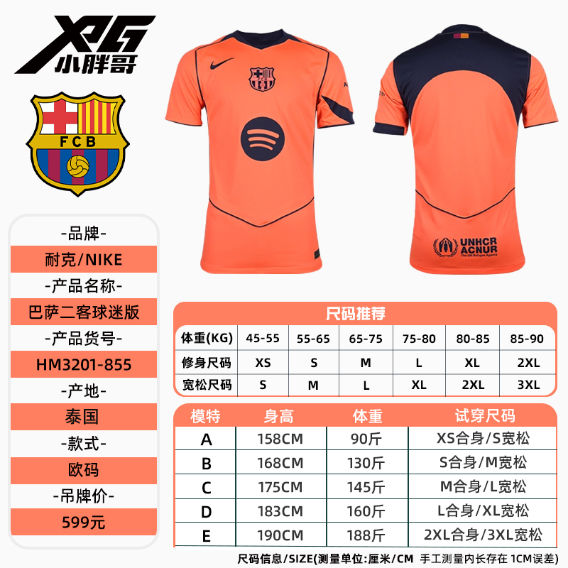 小胖哥XPG耐克25-26巴萨球迷版第二客场球衣短袖比赛训练足球服男