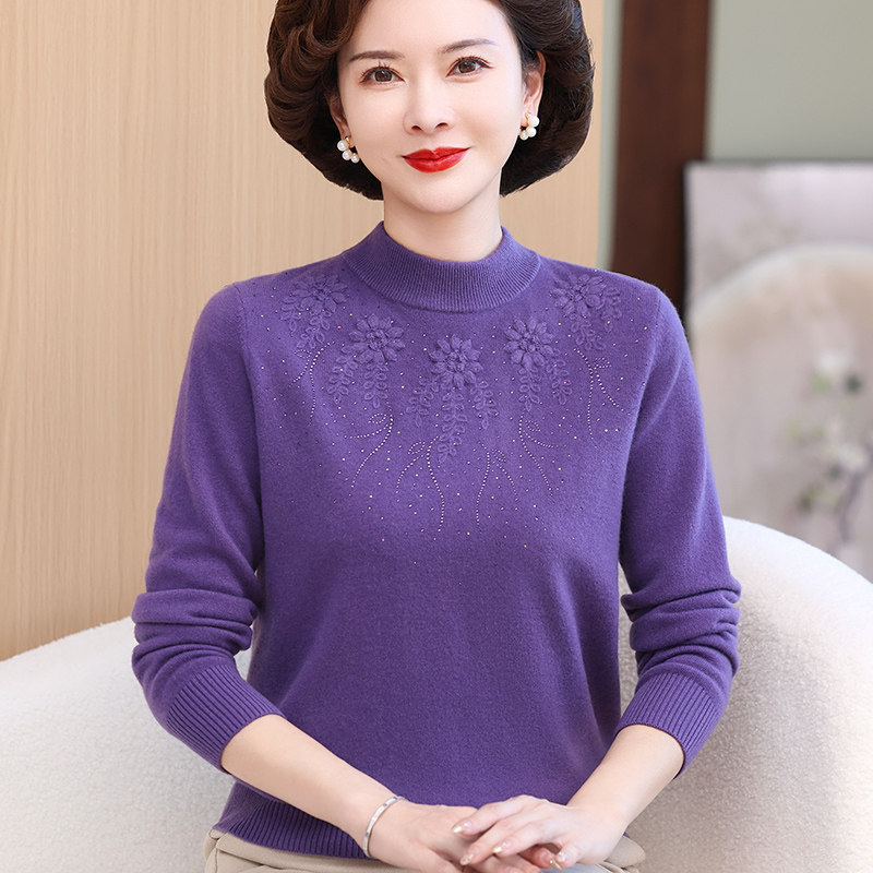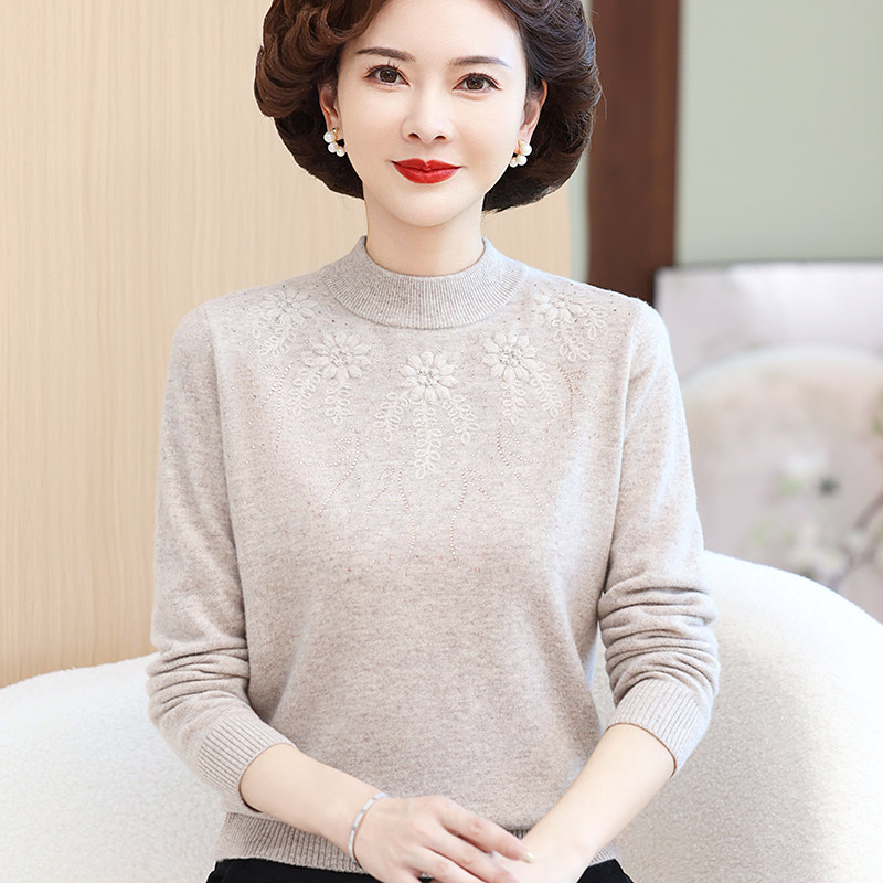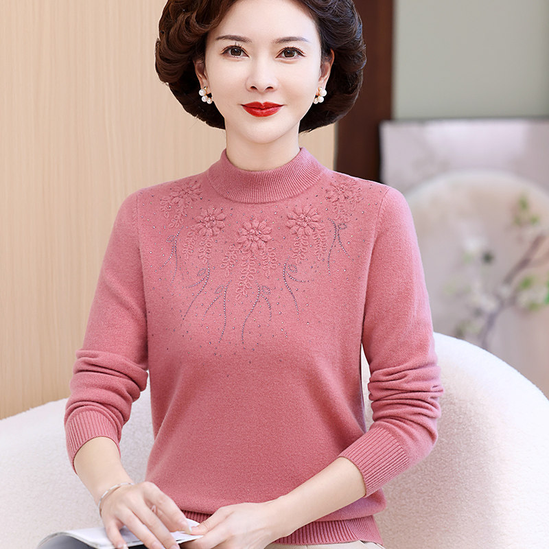 100%纯羊毛衫妈妈毛衣加大码中老年女秋冬装内搭半高领加厚打底衫