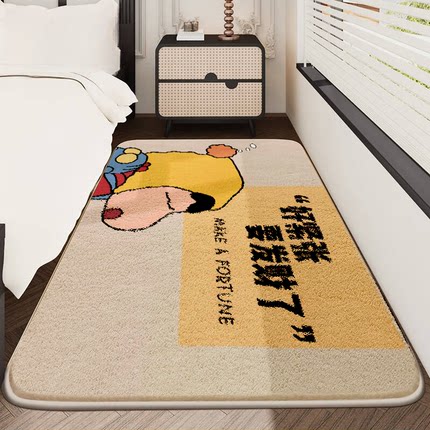床边地毯卡通蜡笔小新加厚仿羊绒女孩卧室儿童爬行地垫防滑可机洗