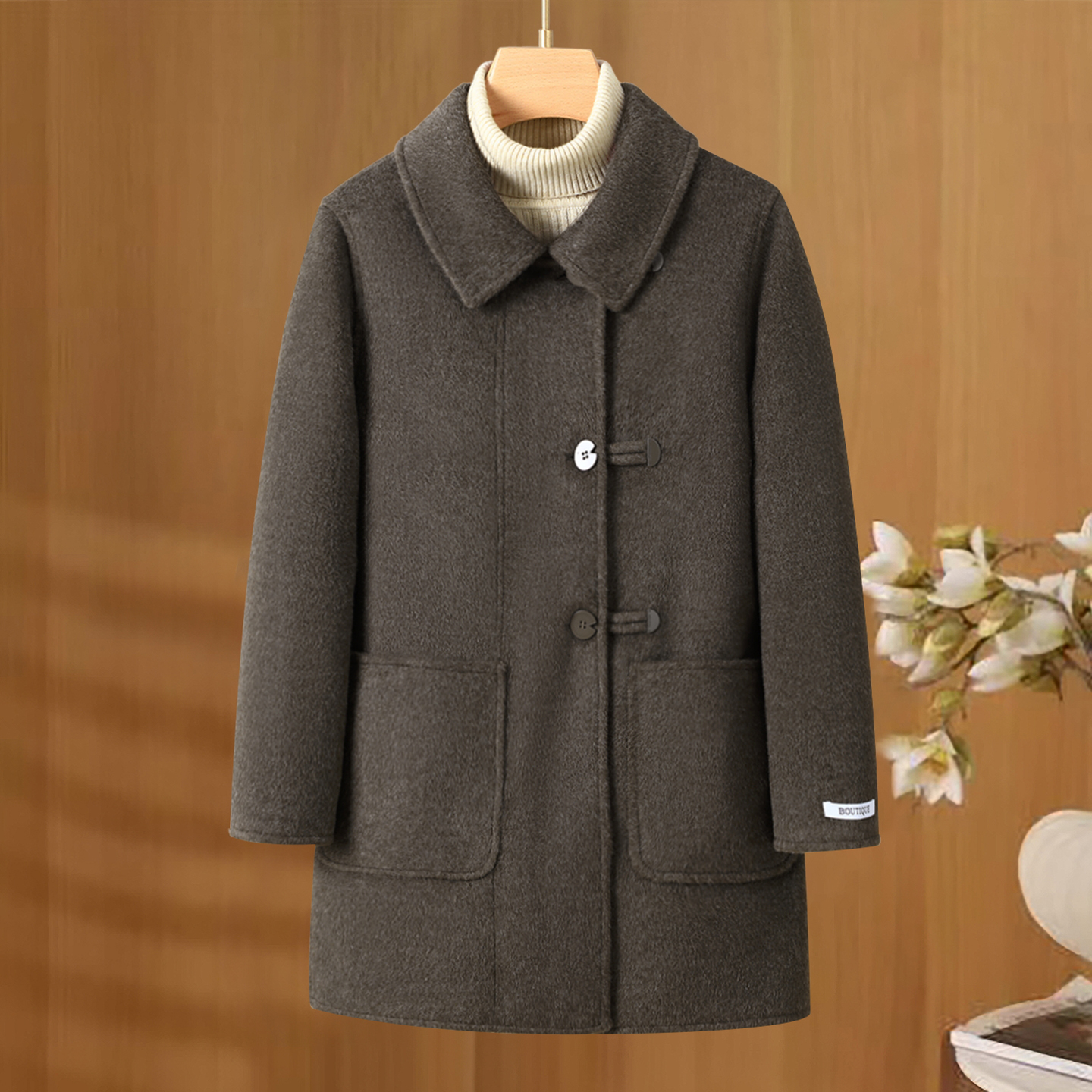 中老年妈妈双面呢羊毛大衣女