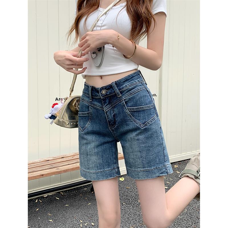 美式复古辣妹低腰牛仔裤2025夏季新款显瘦阔腿直筒短裤四分裤子潮