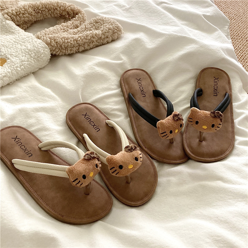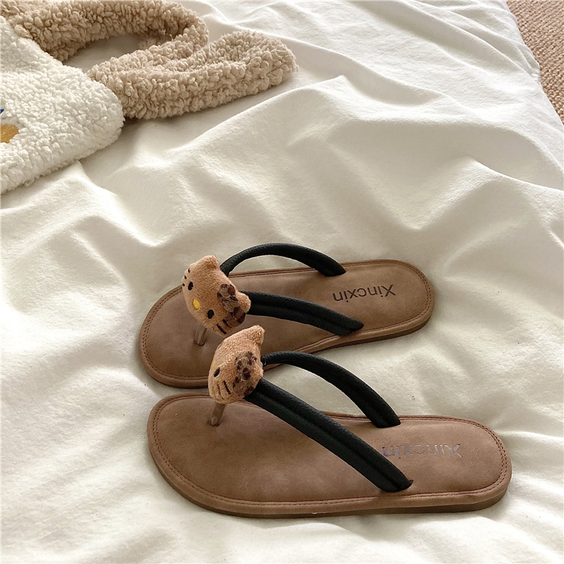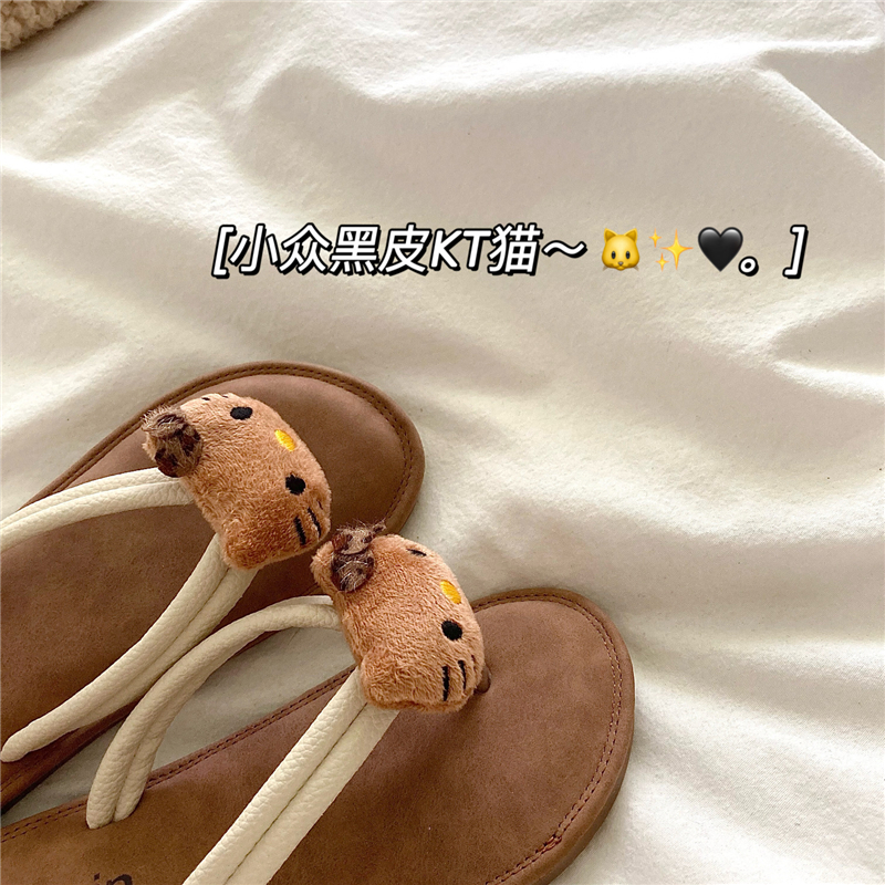 黑皮KT猫~!小众软乎乎踩屎感度假人字拖女夏季外穿防滑沙滩拖鞋