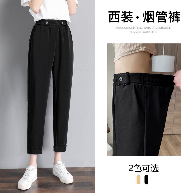 裤女春秋季直筒宽松小脚黑色烟管小个子九分休闲西裤