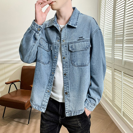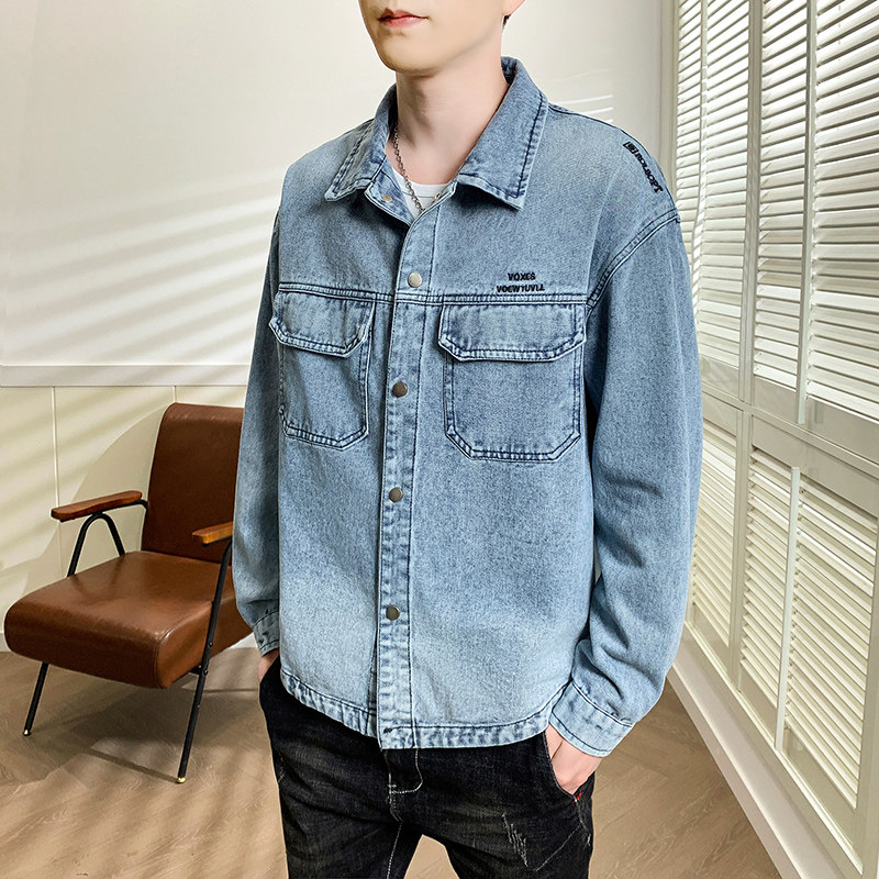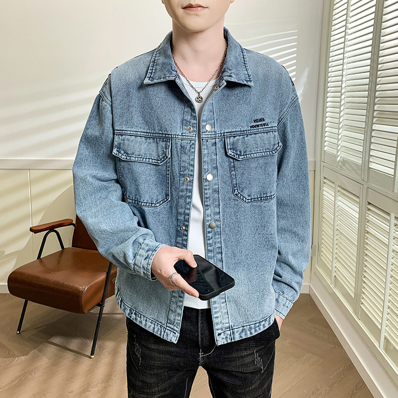 美式工装牛仔外套男2026超火新款潮流百搭夹克青少年学生长袖衬衫