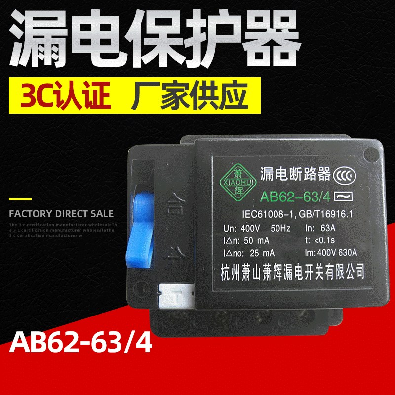 电磁式漏电断路器AB62-63/4 63A漏电保护器 2p漏电开关