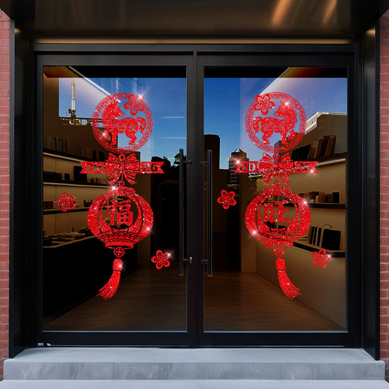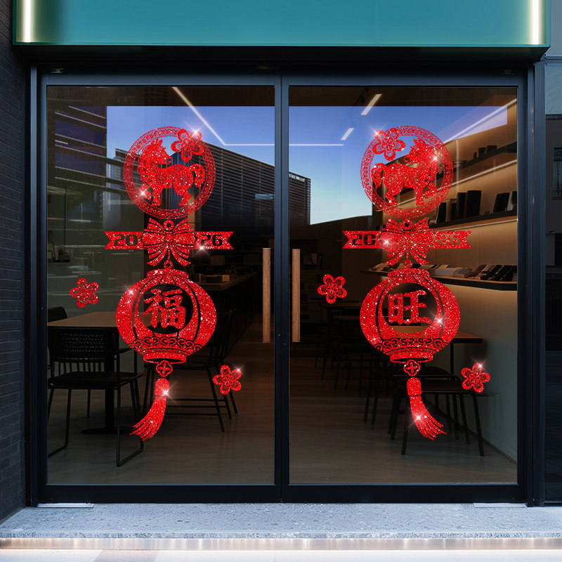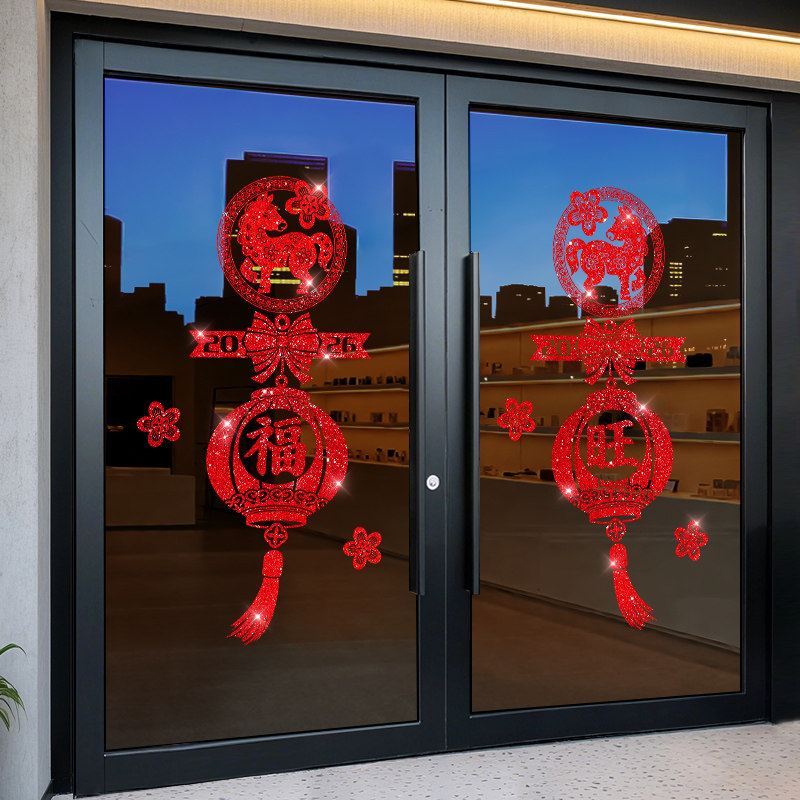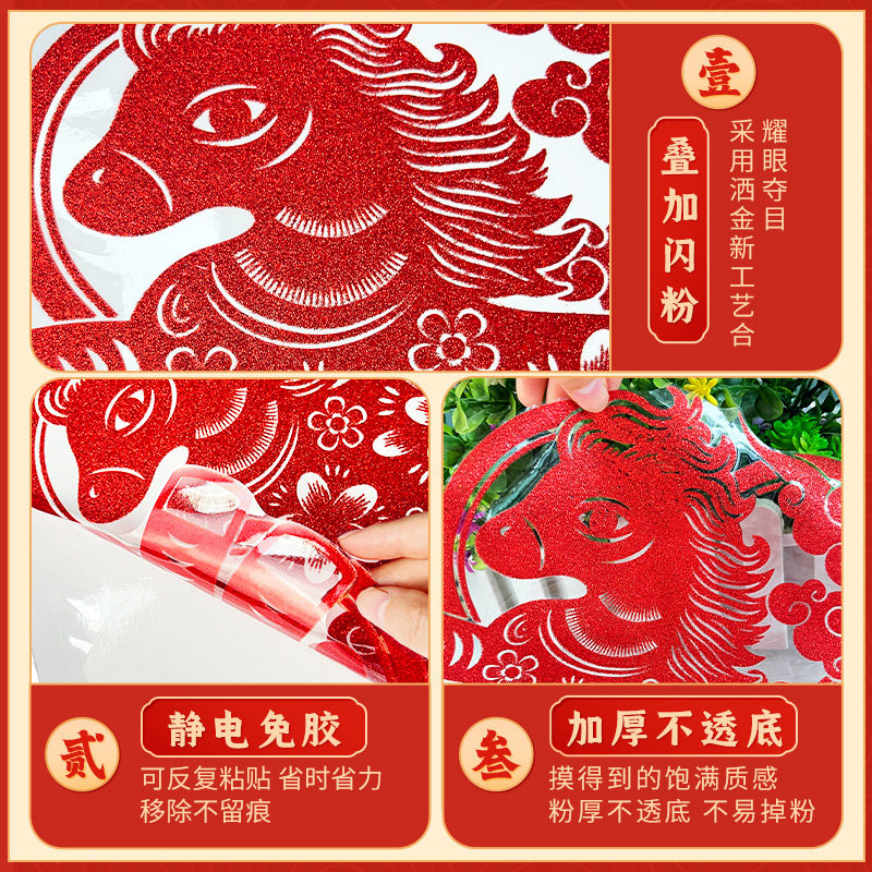 2026年新年窗花玻璃贴春节装饰马年静电贴纸门贴过年元旦氛围布置