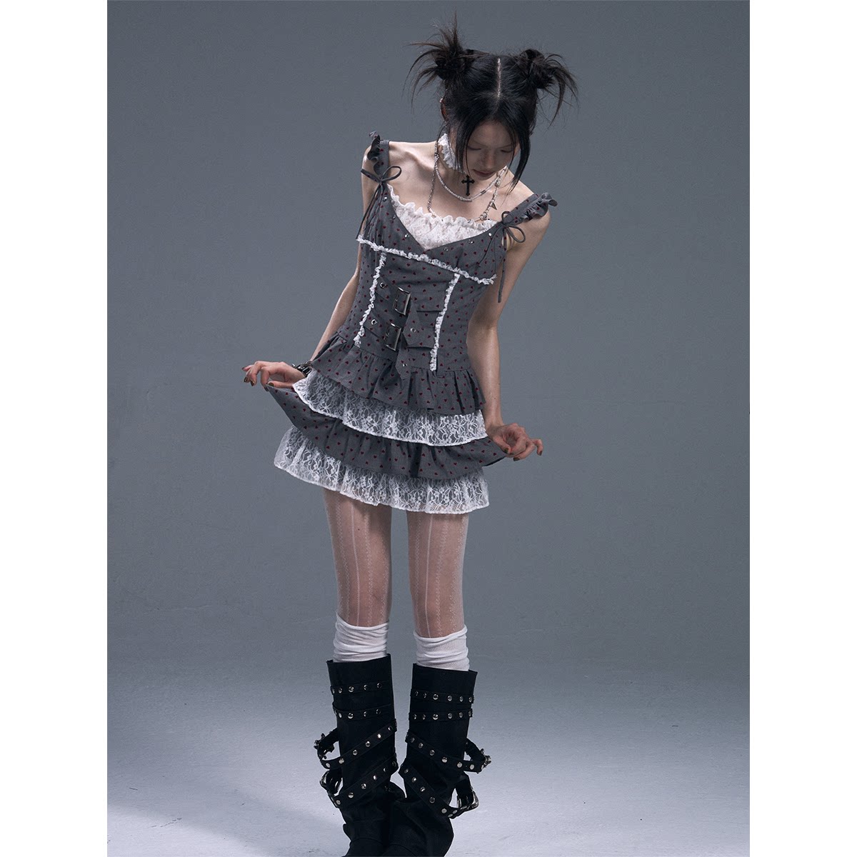 失落后花园轻亚芭蕾风浪漫蕾丝修身收腰拼接蛋糕蓬蓬裙吊带连衣裙