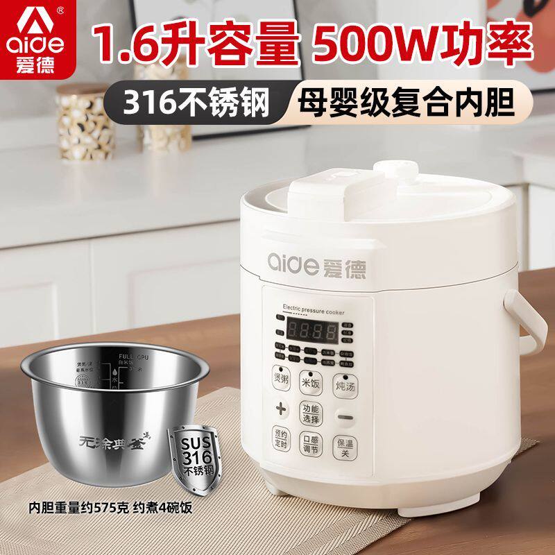爱德1.6L迷你小型电压力锅316不锈钢胆高压锅1~2人多功能智能家用