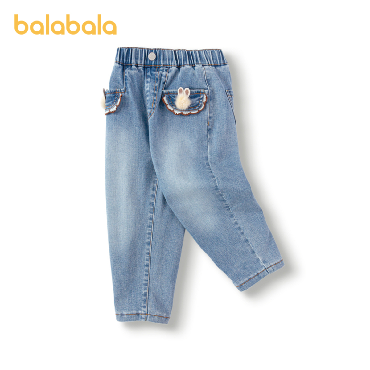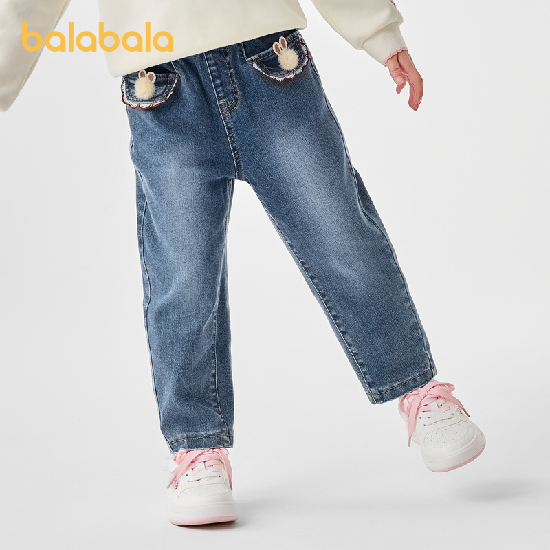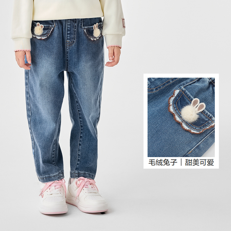巴拉巴拉女童牛仔裤秋冬新款中腰休闲蓝粗斜纹柔软亲肤舒适内里