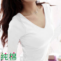 韩版秋冬白色纯棉长袖t恤女打底衣体桖V领打底衫修身