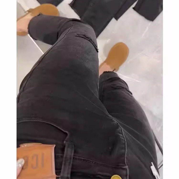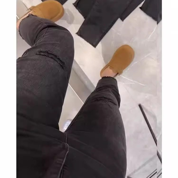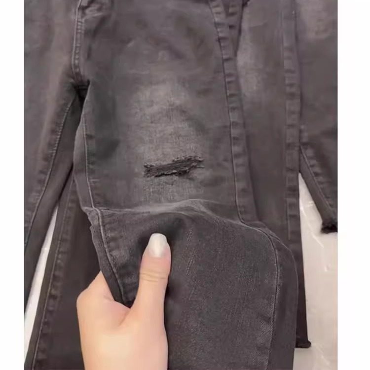 2025秋季新款大码黑灰色破洞九分牛仔裤女胖mm高腰弹力直筒烟管裤