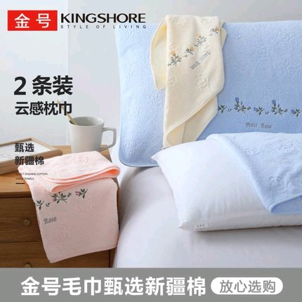金号A类雅致素色螺旋提缎绣花枕头巾4201H厚实大方装枕巾一对纯棉