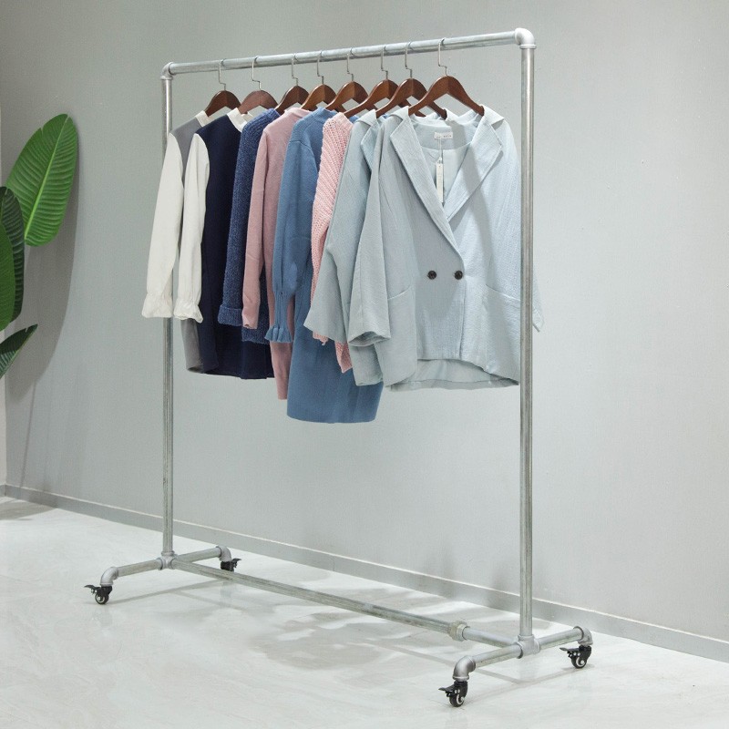服装展示架水管镀锌展会落地架带滑轮加厚室内架子晾衣架店铺货架
