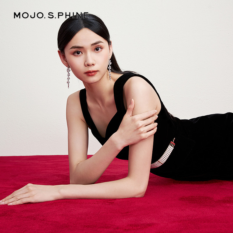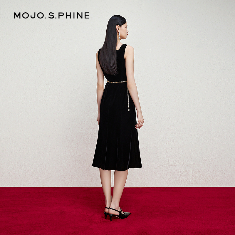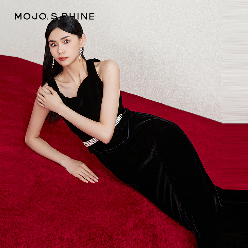 孟美岐同款】MOJO莫佐Agehara轻奢丝绒吊带连衣裙2024新款鱼尾裙