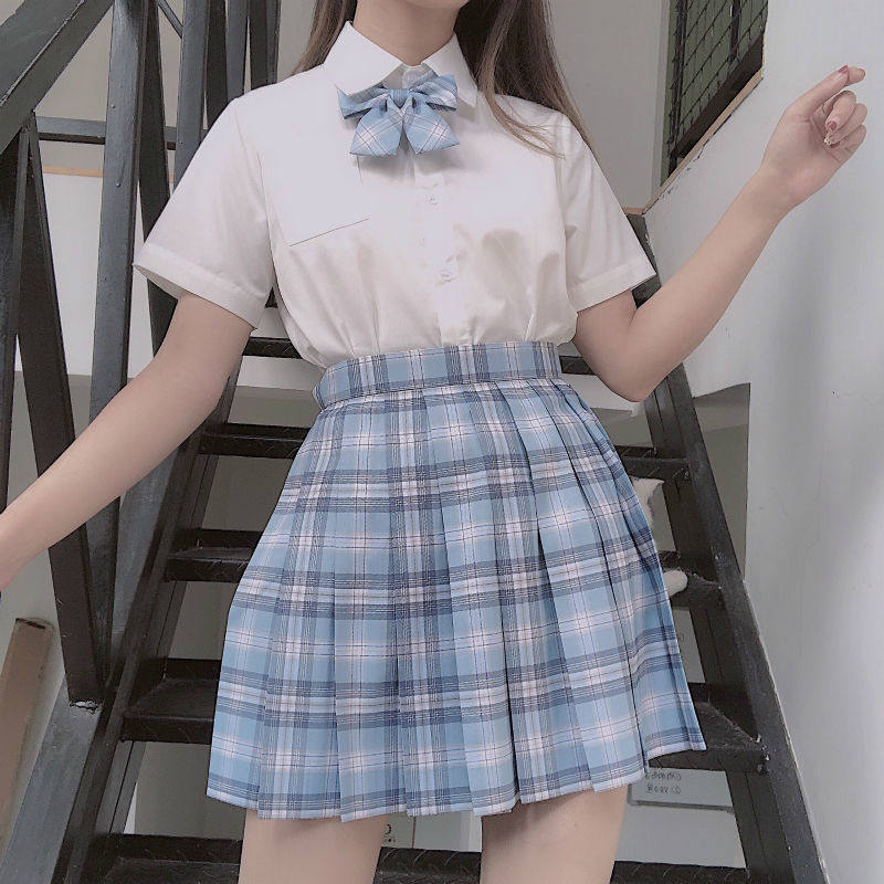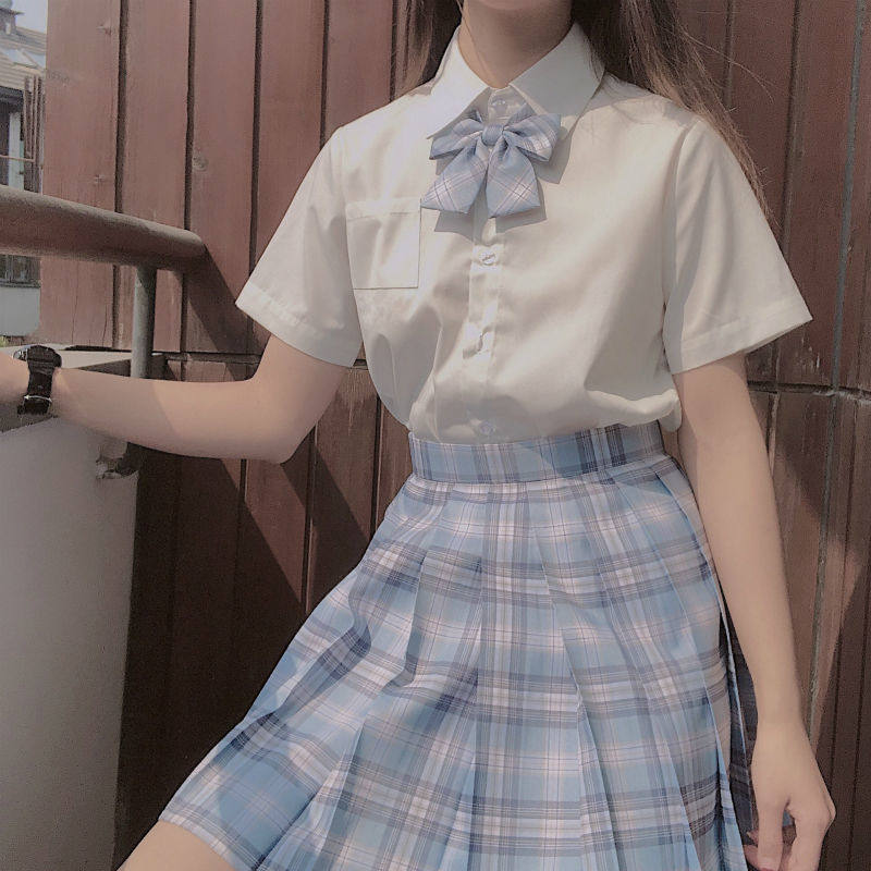 jk2022制服裙夏季日系新款学院风套装女襟角襟衬衫女学生套装格裙