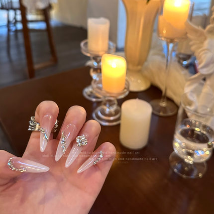 Meil Nail 长岛冰茶 31加长尖圆蜜桃裸色系乳白渐变美甲穿戴甲