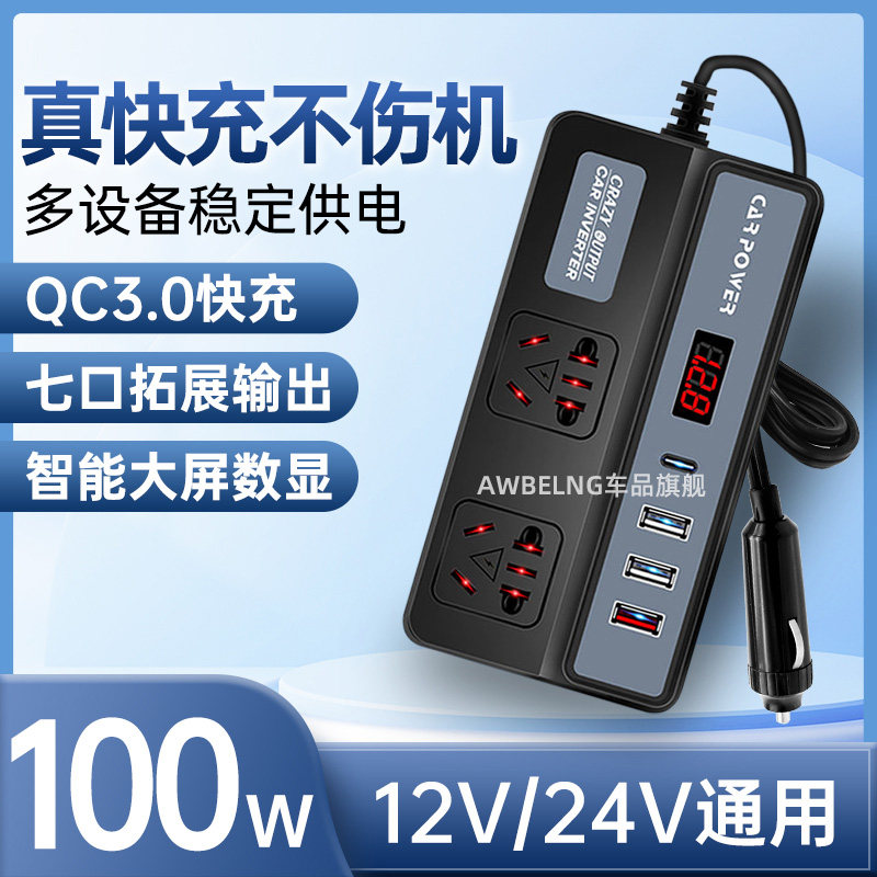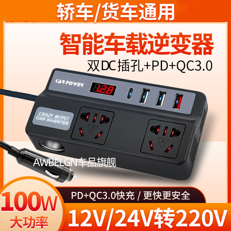 12v电瓶转usb接口直流车载逆变器24v转220V转换器轿货车电源插座