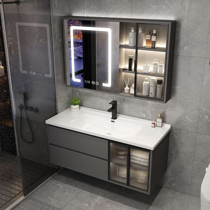 轻奢现代简约浴室柜组合陶瓷一体盆洗手洗脸池镜卫生间洗漱台盆套
