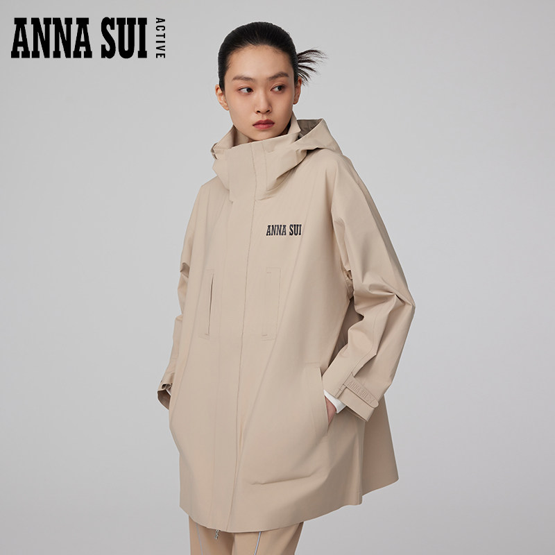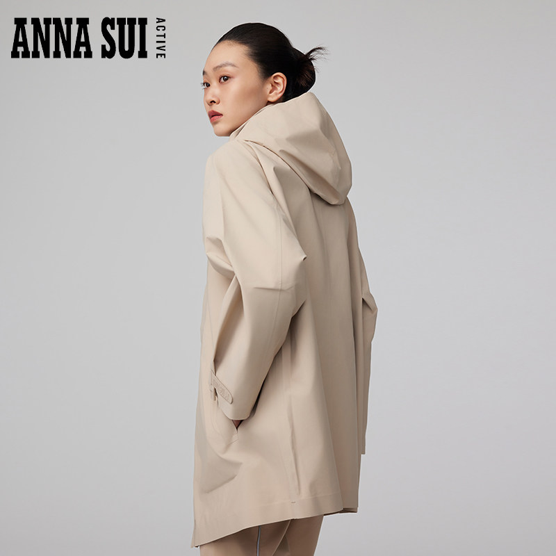 ANNA SUI安娜苏运动 全能防护紫色连帽防风防水时尚冲锋衣A字外套
