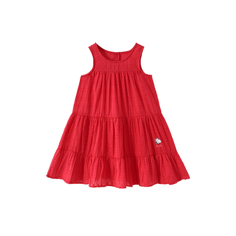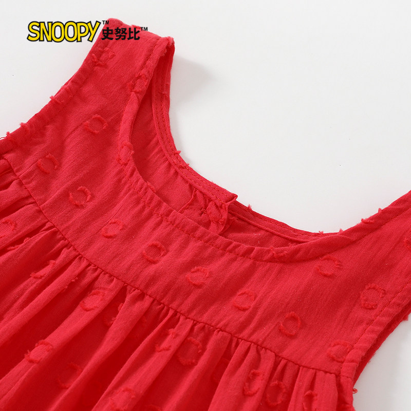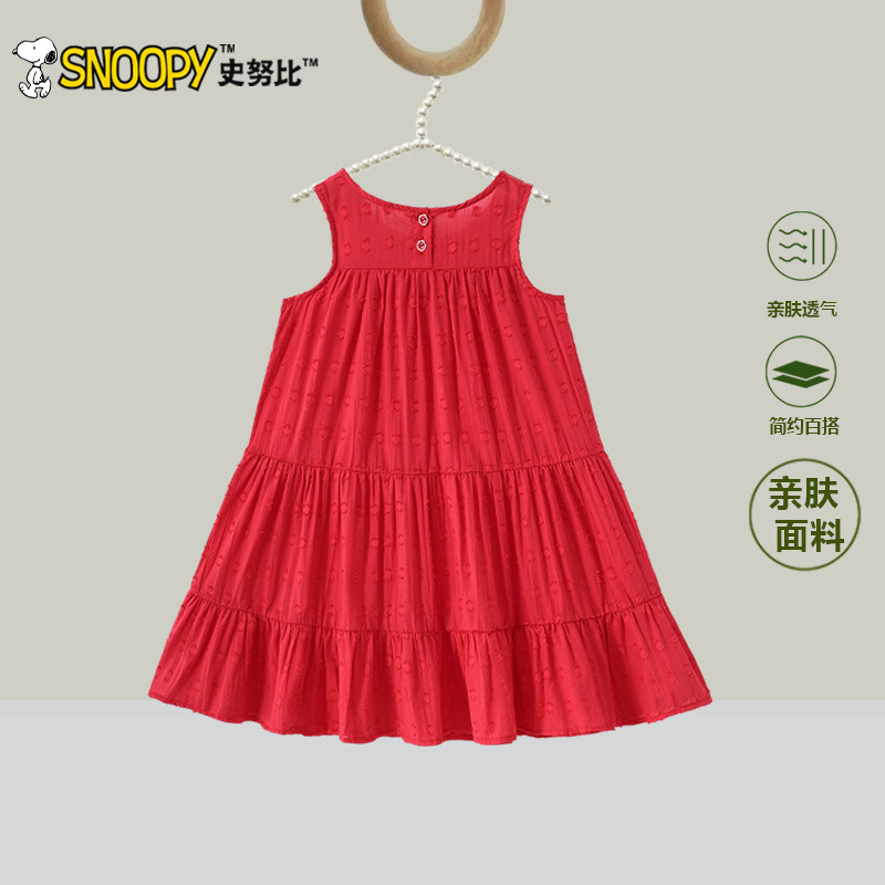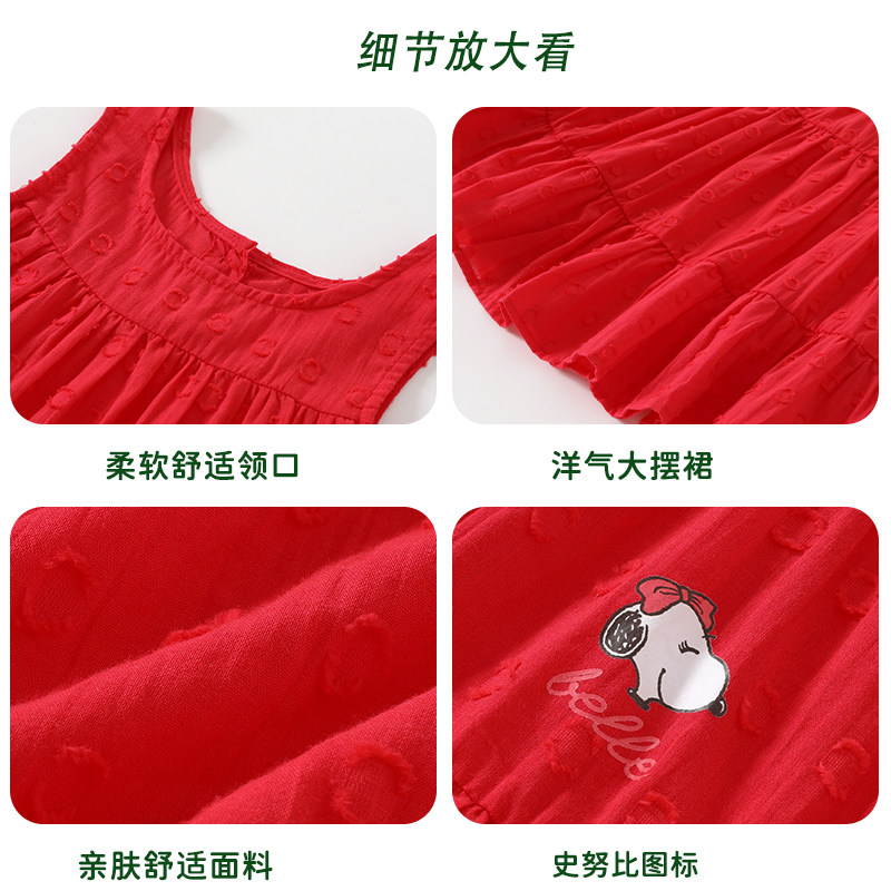 史努比女童连衣裙夏装2025新款儿童洋气红色公主裙女孩夏季背心裙