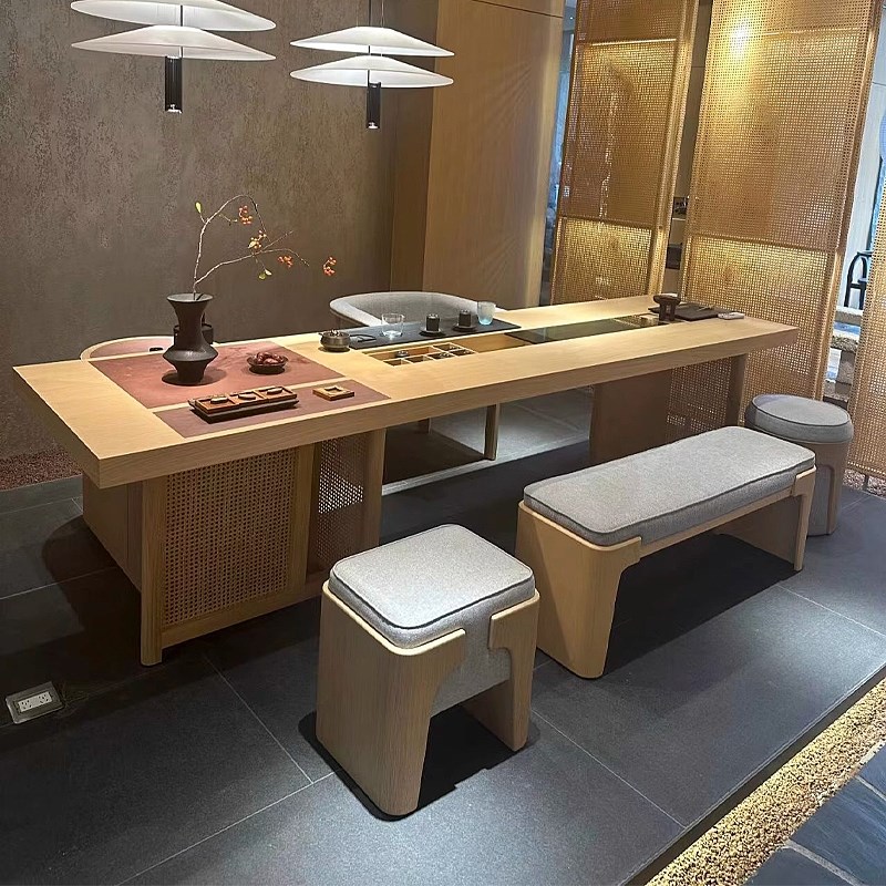 新中式茶桌椅组合实木功夫泡茶台办公桌一体禅意简约茶室家具定制