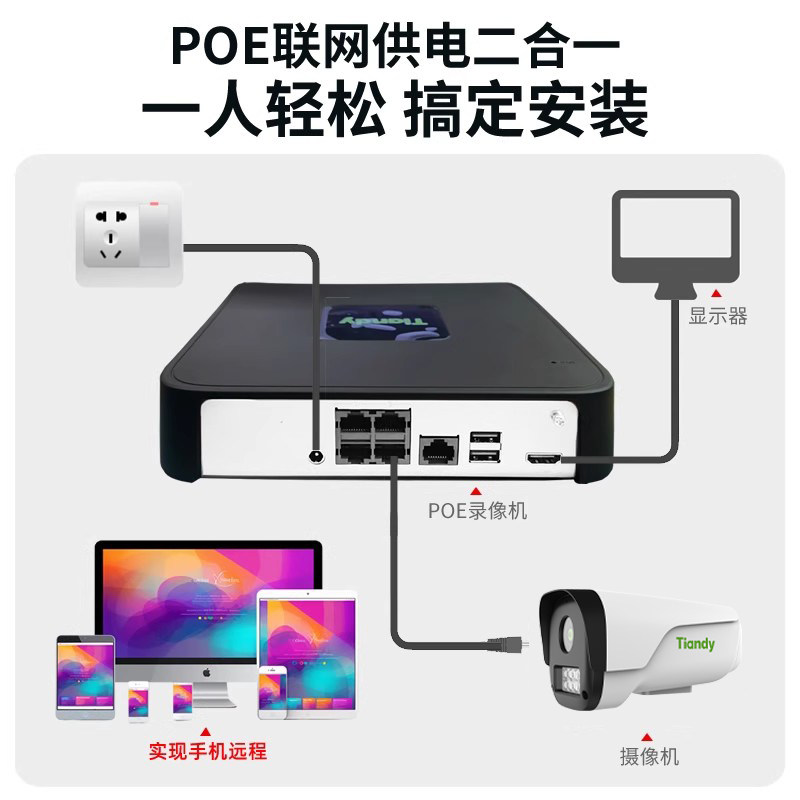 天地伟业监控摄像头POE套装摄影头室外全彩高清夜视家用手机远程