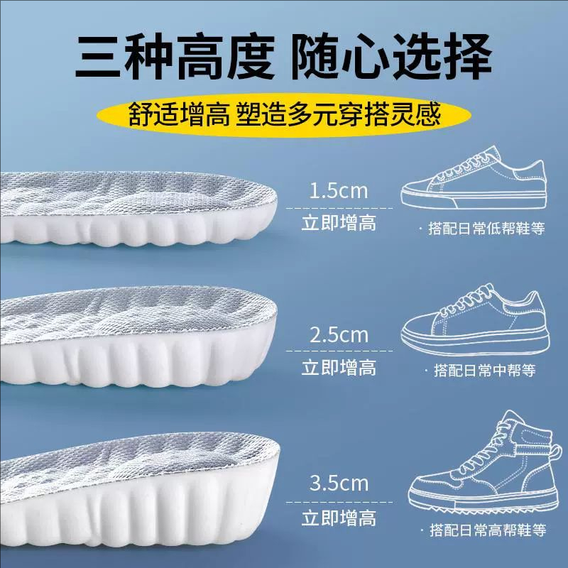回力专用鞋内增高鞋垫女隐形不累脚踩屎感不塌陷增高垫吸汗防臭男