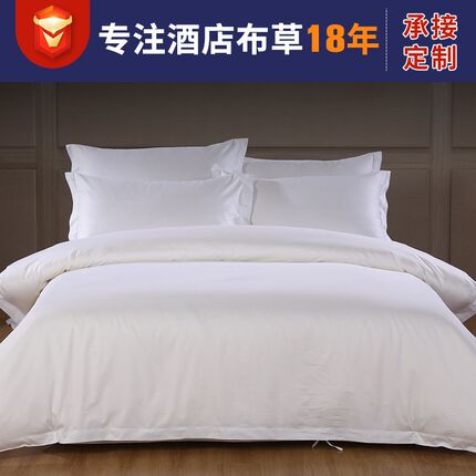 60支全棉酒店四件套 宾馆床上用品酒店布草贡缎纯白床单被套
