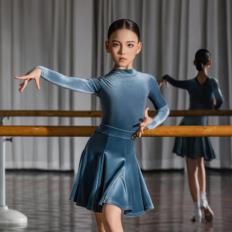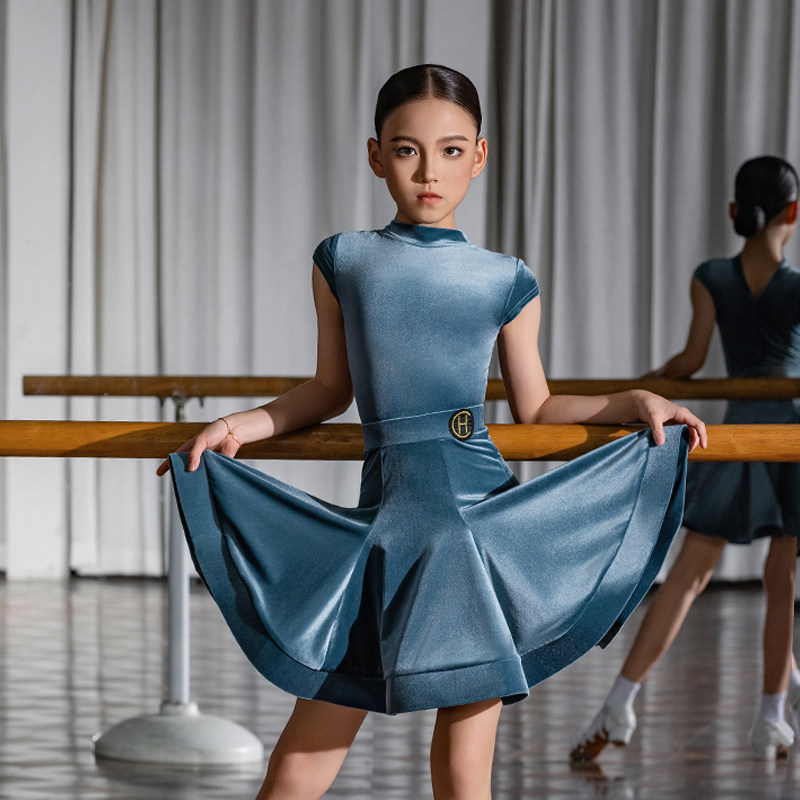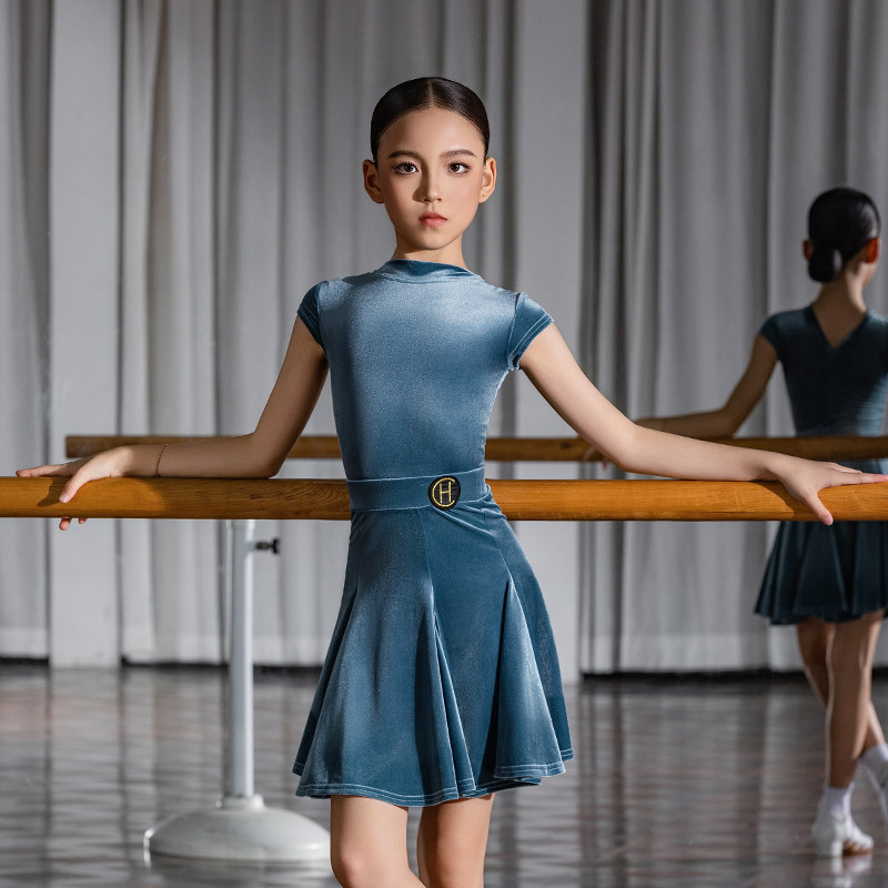 皇朝舞蹈2025女童拉丁舞比赛服短袖薄丝绒国标舞服HC6401+HC7218
