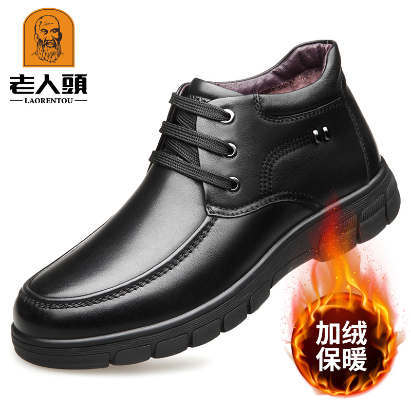 老人头羊毛棉鞋高帮男鞋 中老年加厚加绒真皮皮鞋保暖防滑爷爷鞋