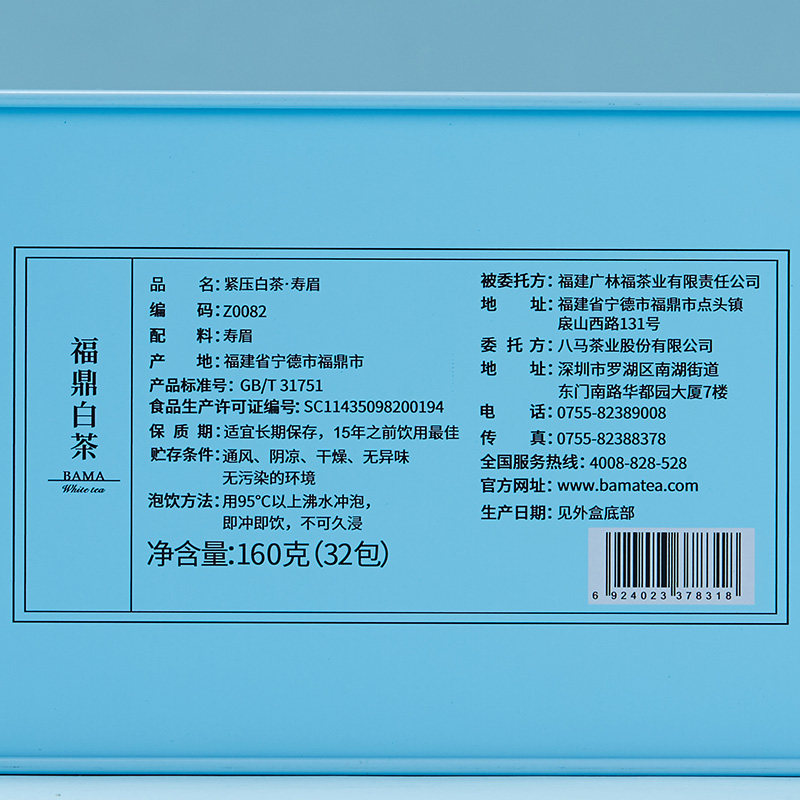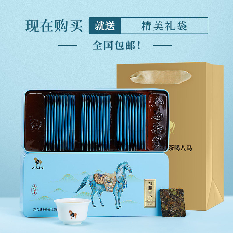 八马茶叶正宗福鼎白茶寿眉白茶花香高山小方片包装口粮茶盒装160g