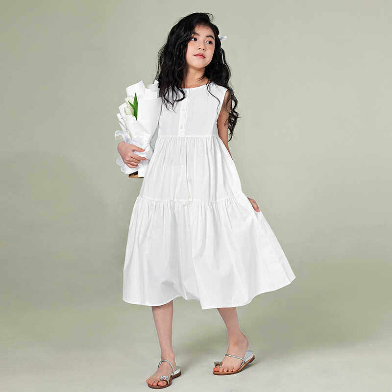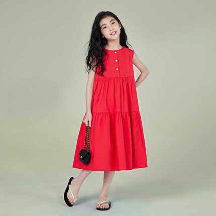 女童连衣裙夏装无袖沙滩裙新款洋气亲子装中大童纯棉海边背心长裙