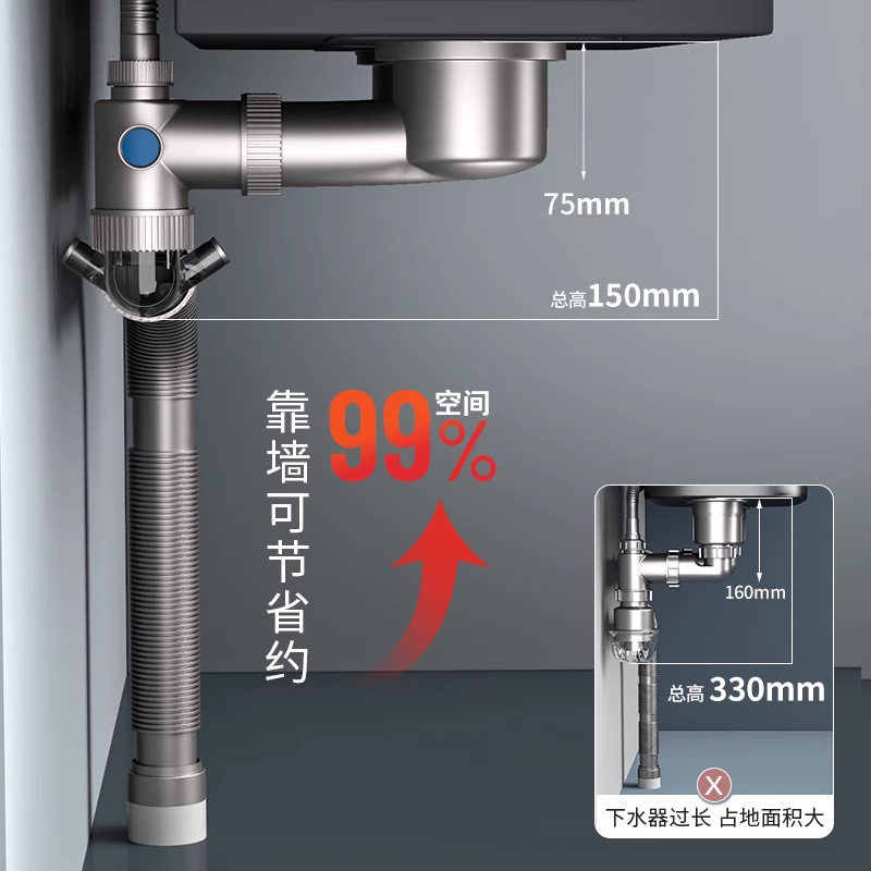 超省空间一体式下水器带防臭止回