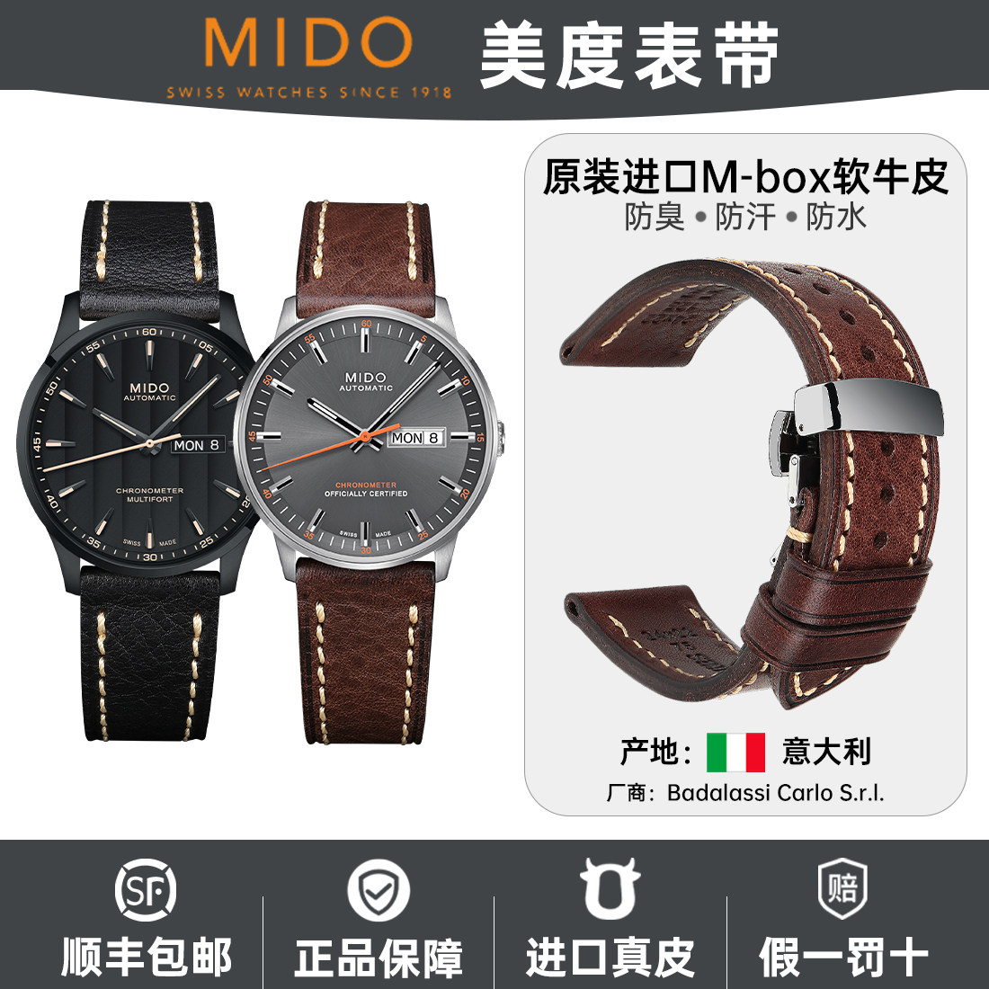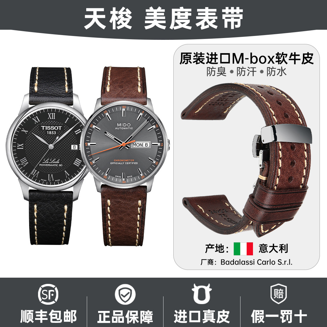 通用手表带男真皮配件适用美度指挥官贝伦赛丽天梭力洛克浪琴名匠