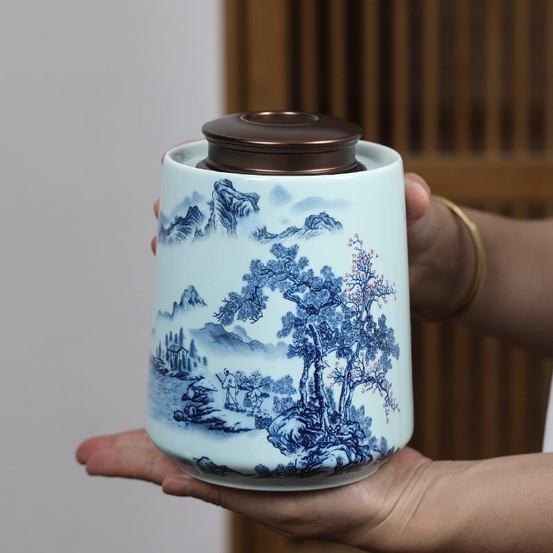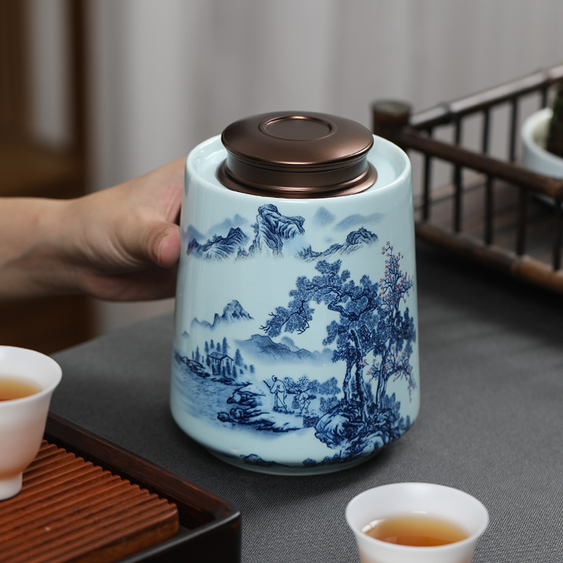 茶叶罐子陶瓷大号密封罐合金金属螺旋双盖自吸盖存储茶罐包装礼盒